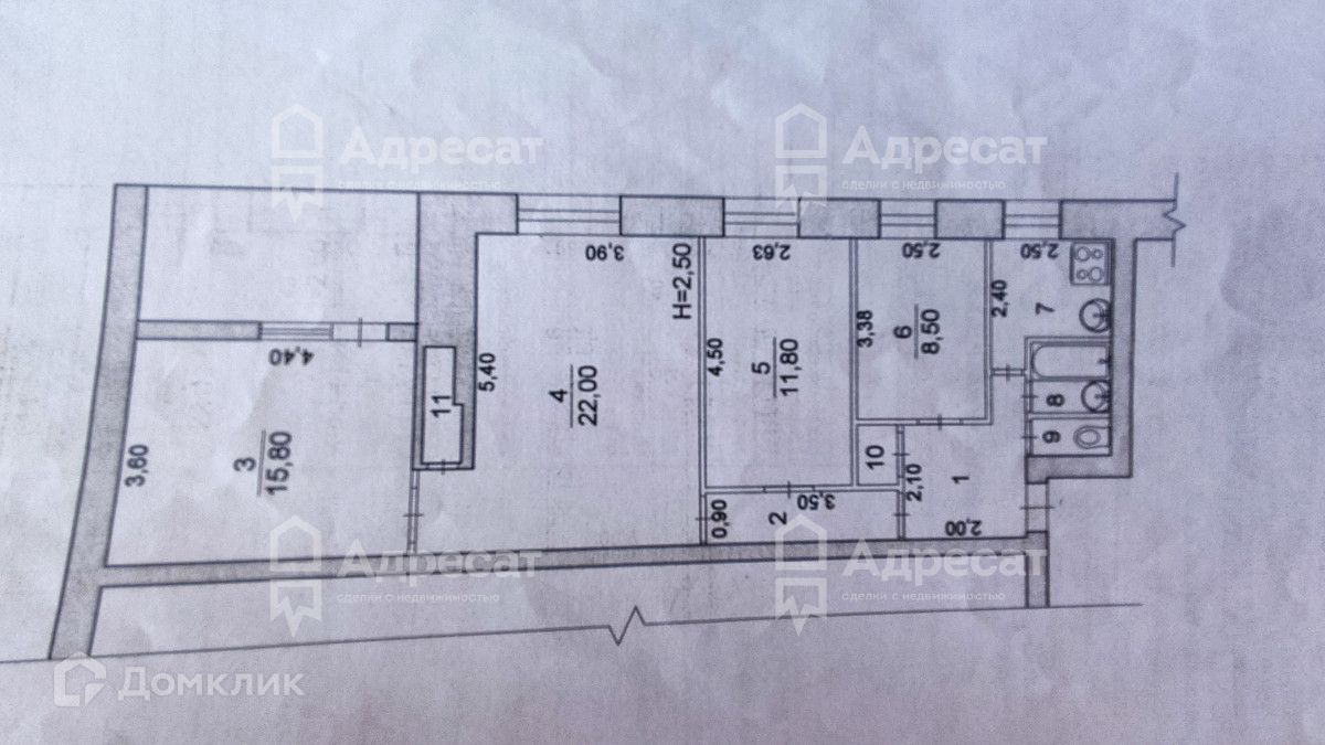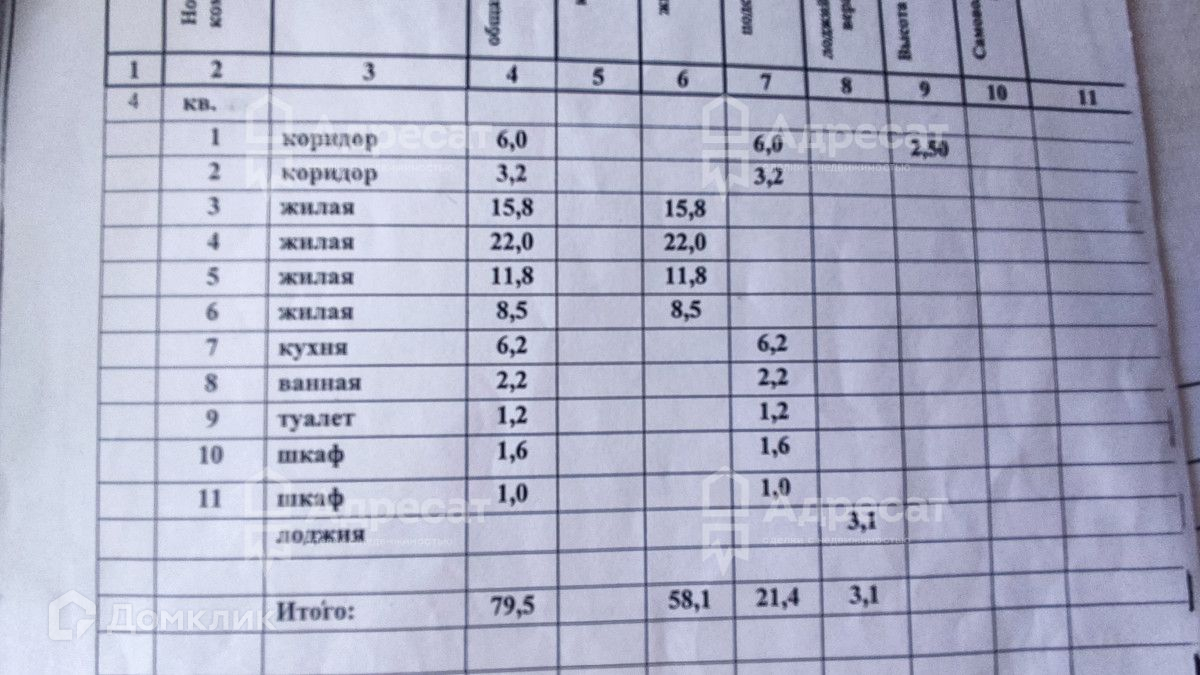 Жилая площадь 58.1 м2