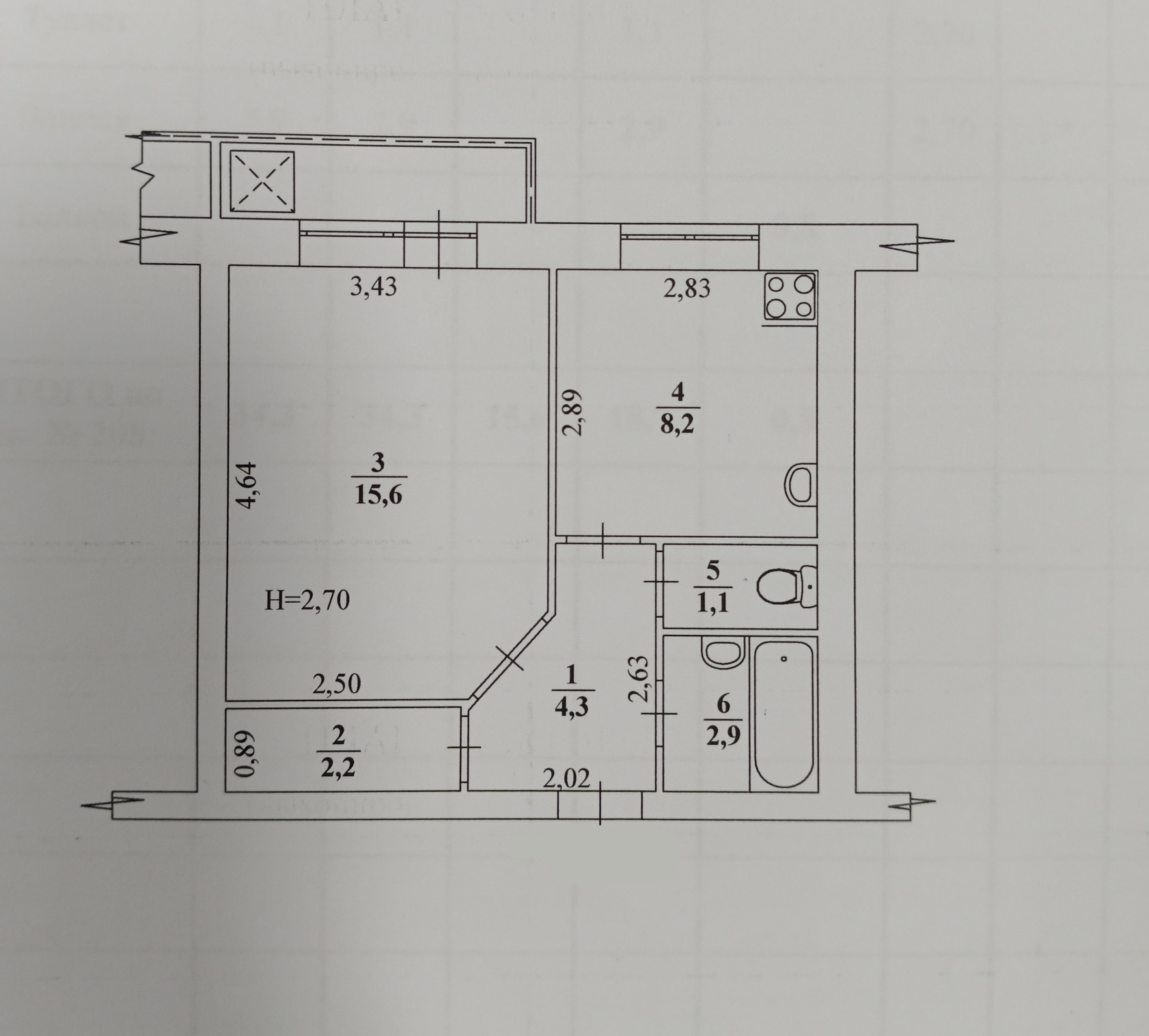 Балкон, лоджия 1 балкон