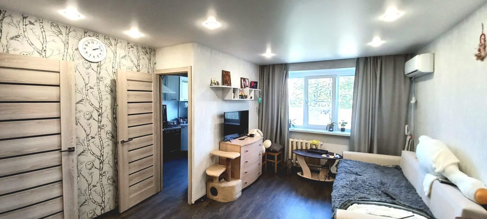 Квартира имеет косметический ремонт, благодаря чему новым владельцам не потребуется сразу вкладываться в обновление интерьера. Окна квартиры выходят на улицу, обеспечивая достаточное количество естественного света в течение дня.