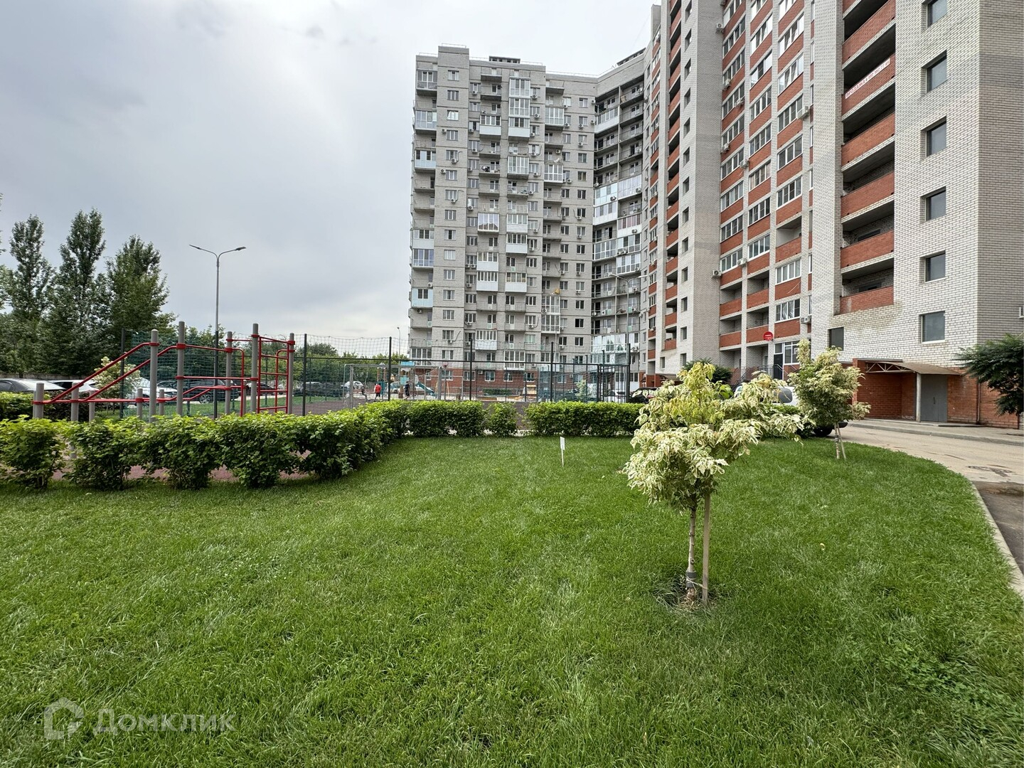 Современный озелененный двор (детские площадки, футбольное, волейбольное поле)