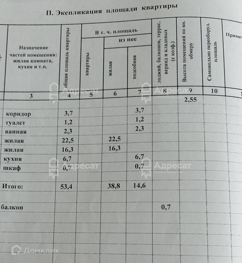 Общая площадь 53.4 м2