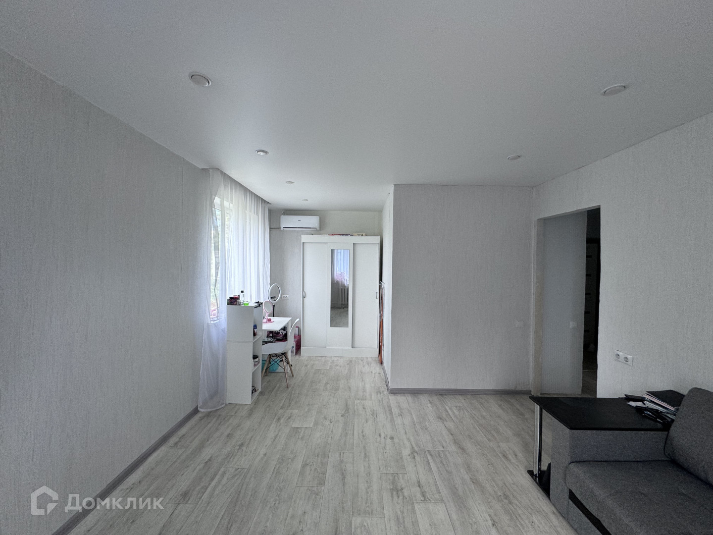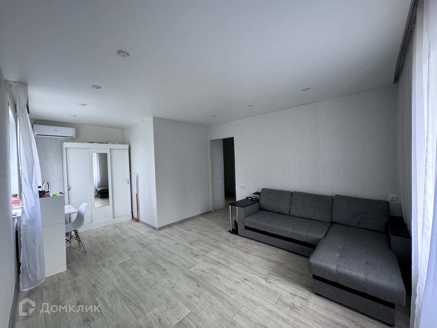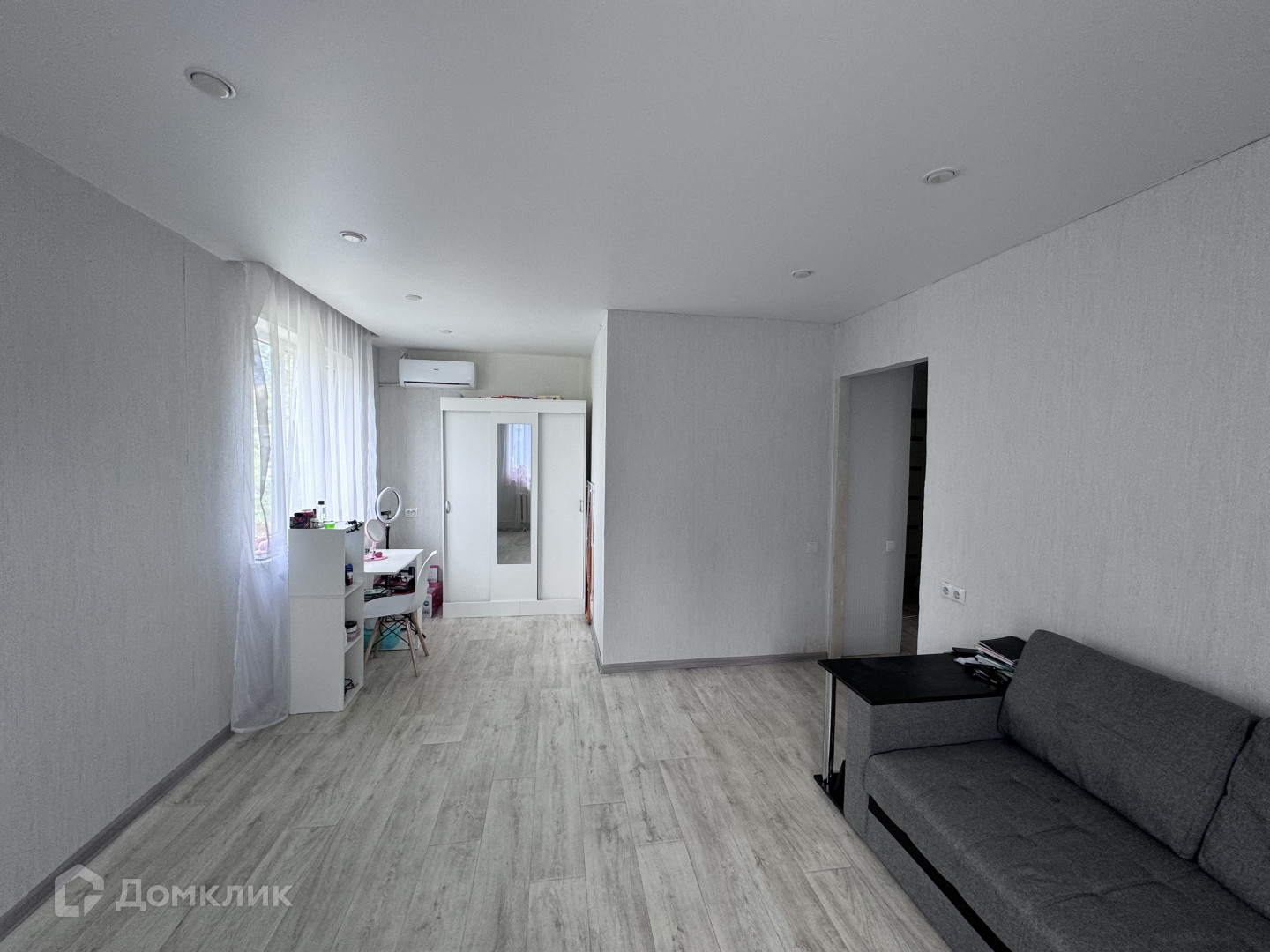 Остается кухонный гарнитур, сплит-система, диван, шкаф.