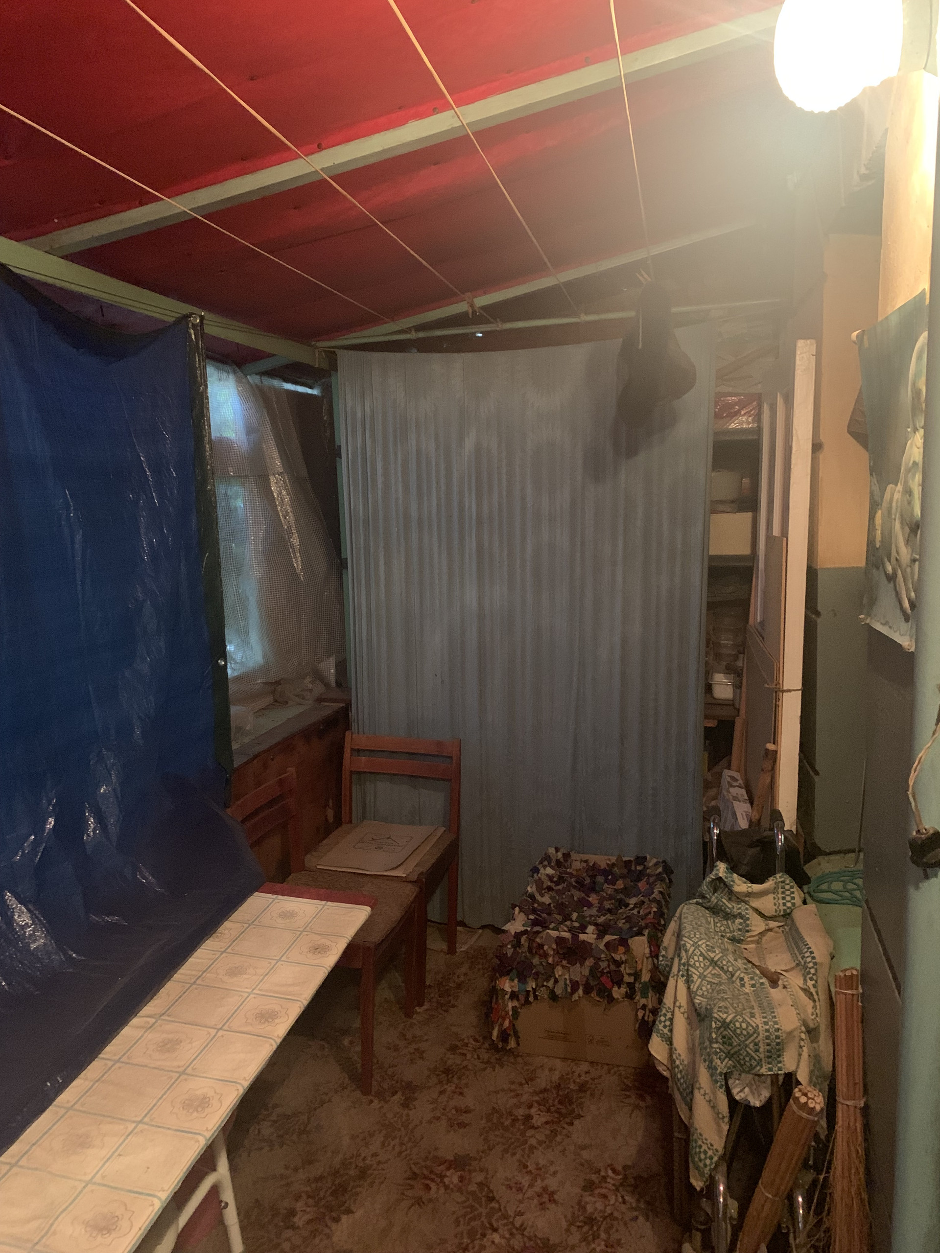 Отличительная особенность квартиры: из коридора имеется выход на балкон, ориентировочной площадью 10 кв.м. Балкон имеет навес из шифера, натянута сетка-рабица и полиэтиленовая пленка. Со стороны улицы - заплетен диким виноградом. Под балконом имеется погреб, глубиной 2,0м (2 отсека).