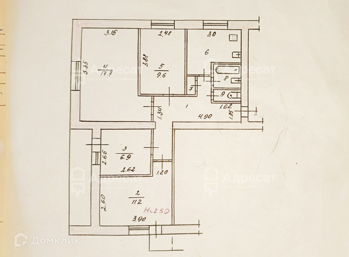 Комната : 9,6 кв. м.