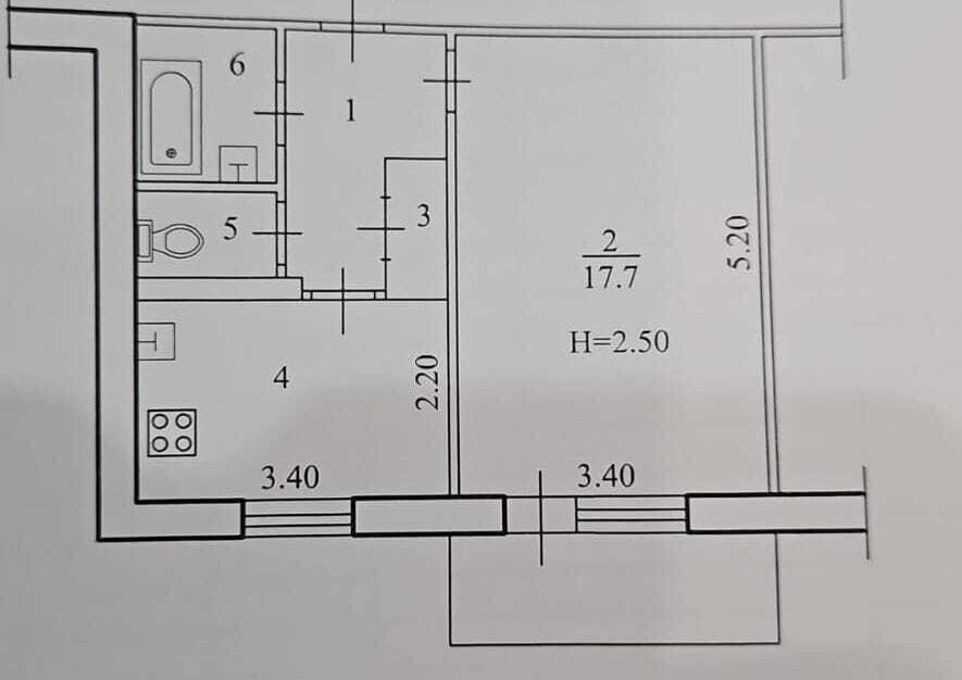 Общая площадь 34.1 м2