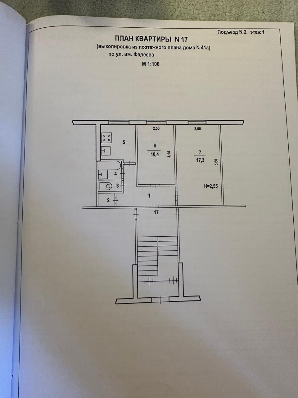 2-комнатная квартира, 44 м2, этаж 1 / 5, на продажу в Волгограде, улица Фадеева, 41А