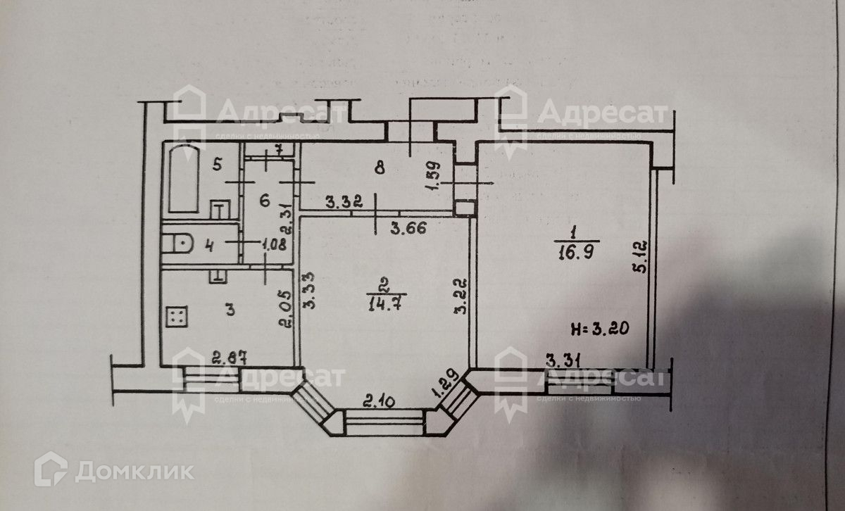 Две комнаты, сан узел раздельный, кухня, коридор. Высокий потолок - 3,2 м. Пластиковые стеклопакеты.