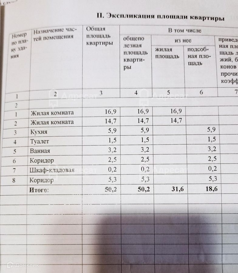 Общая площадь - 50,2 кв. м.