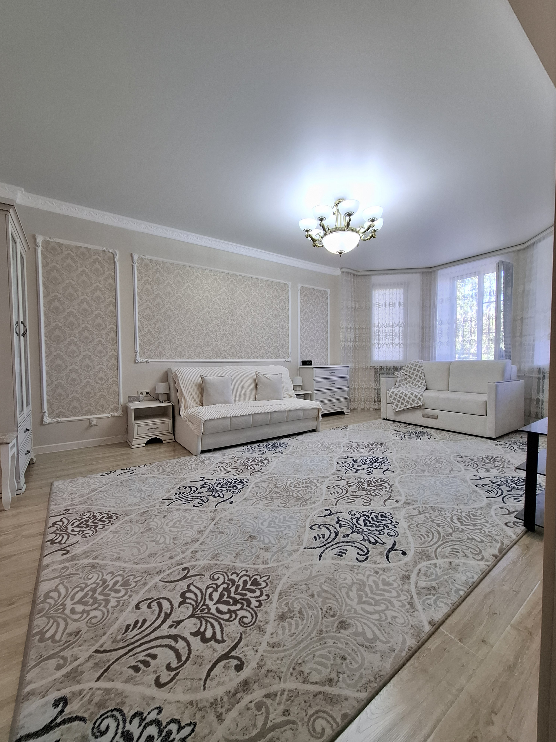 Изысканный классический стиль,в отделке использованны качественные и дорогие материалы: полностью заменена проводка, сантехника, установлен качественный стеклопакет . На полу ламинат и керамогранит, стены выровнены по маяку - идеально ровные.