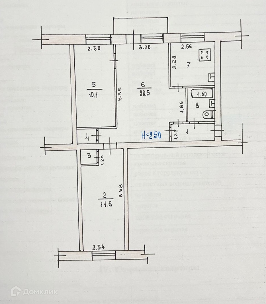 Хрущевская планировка: общая 57.20 / жилая 42.20 / кухня 7.00