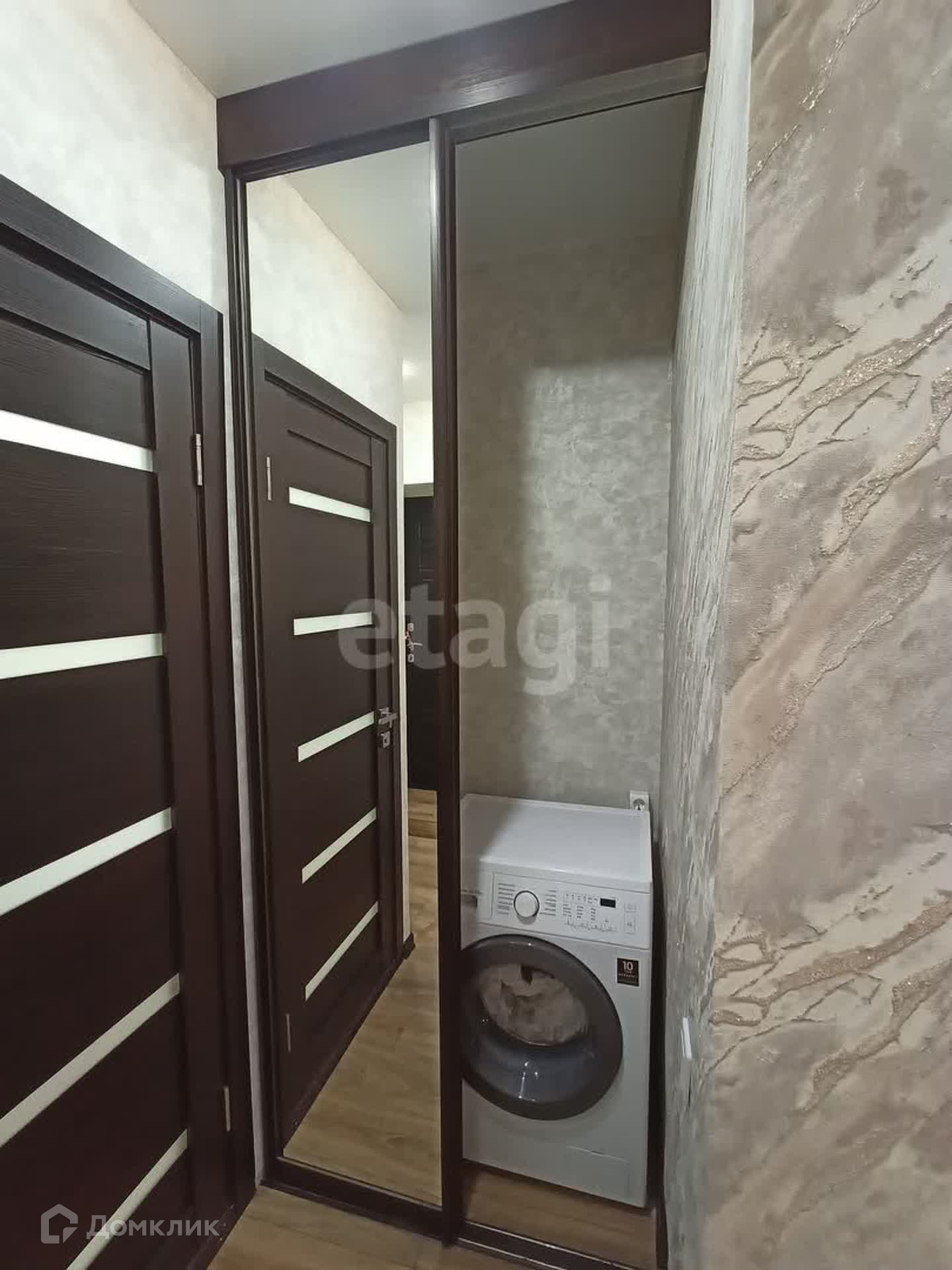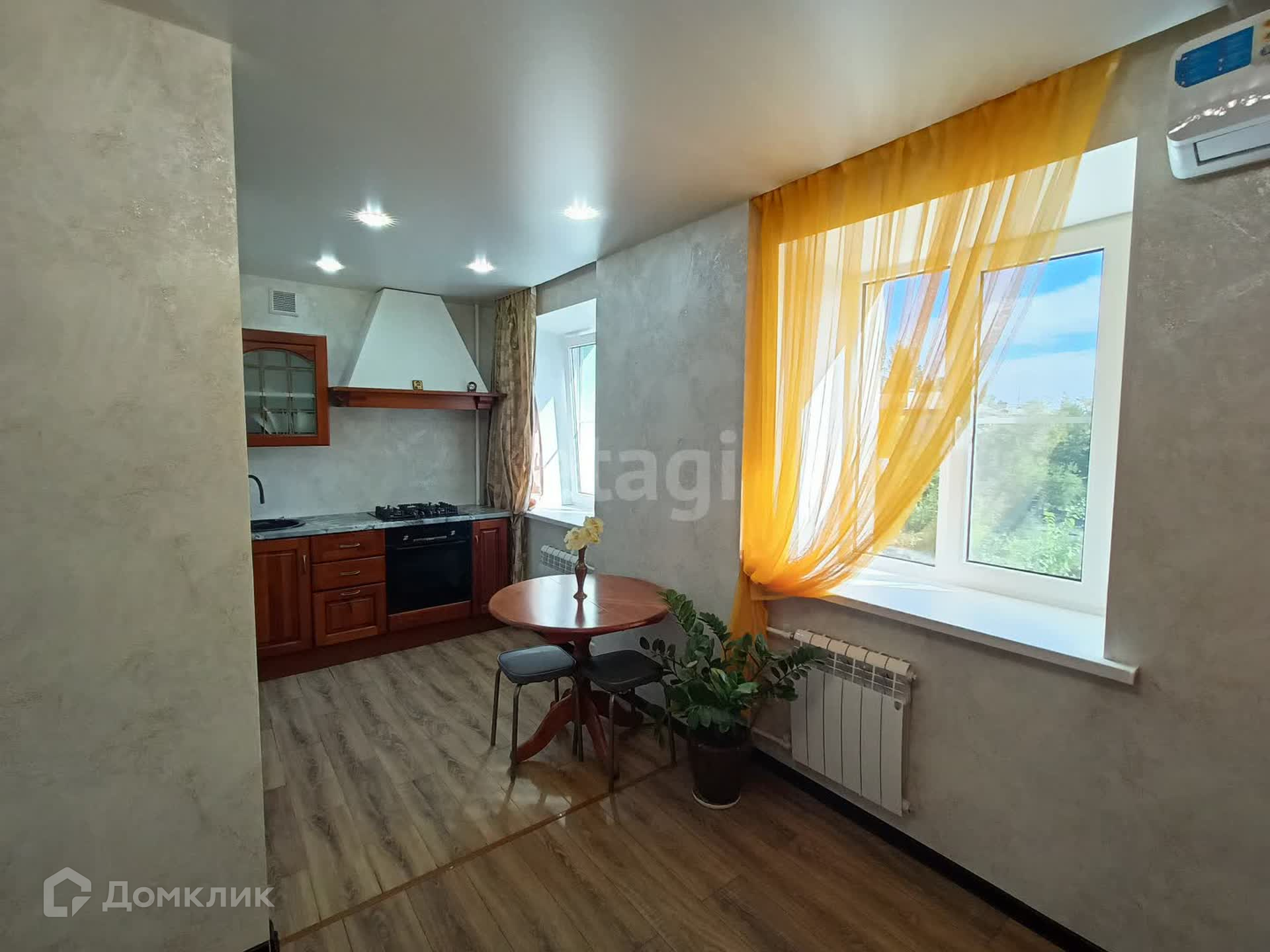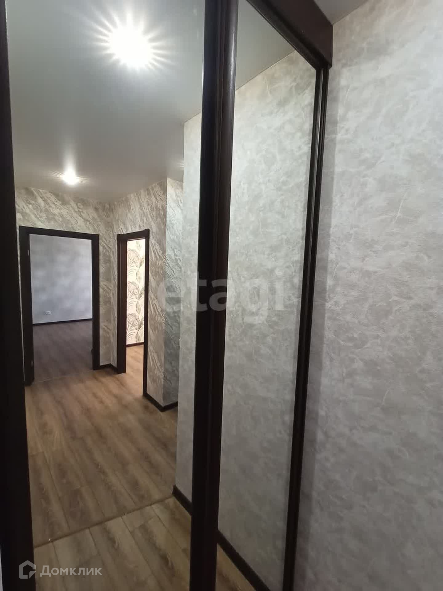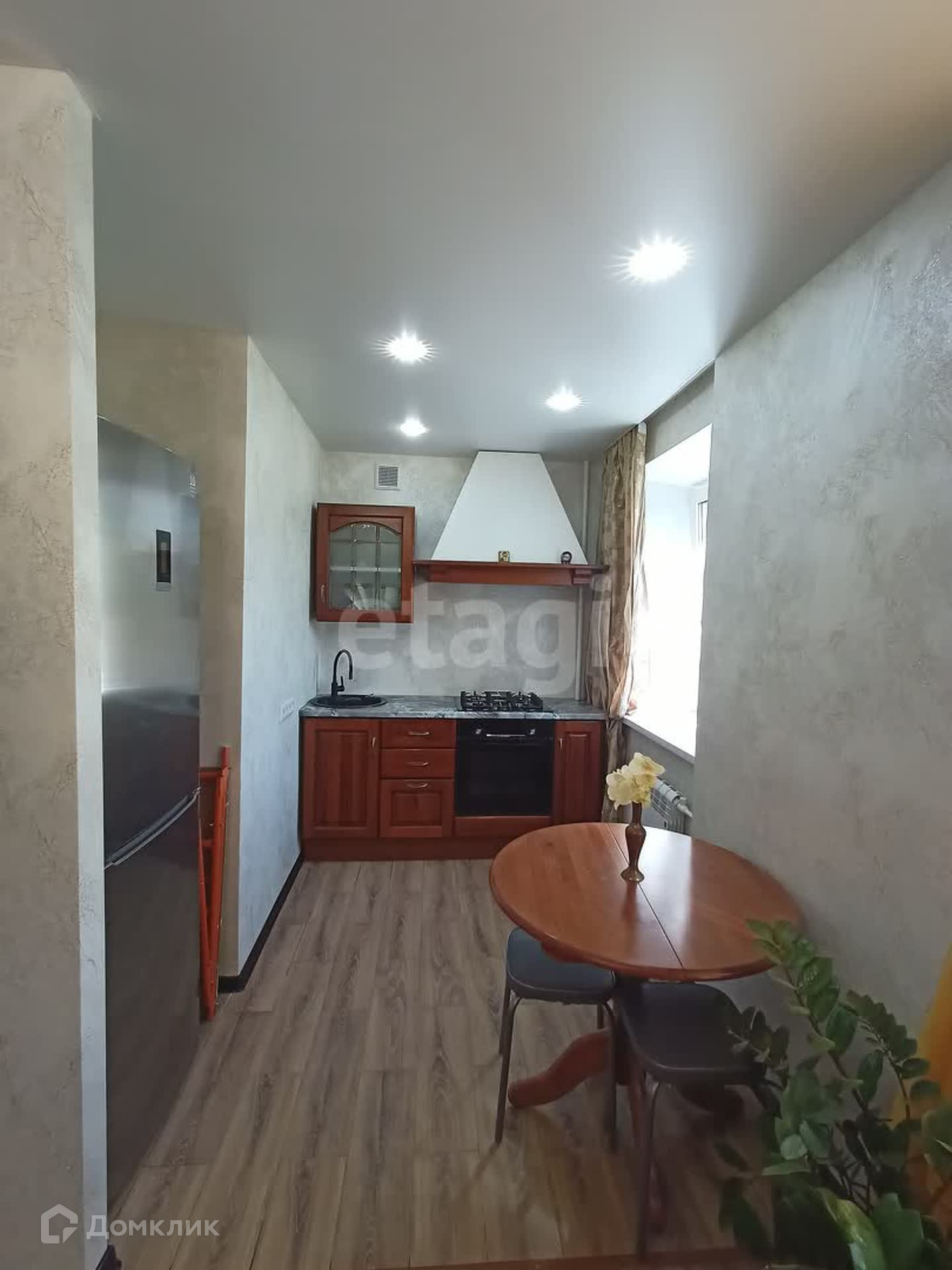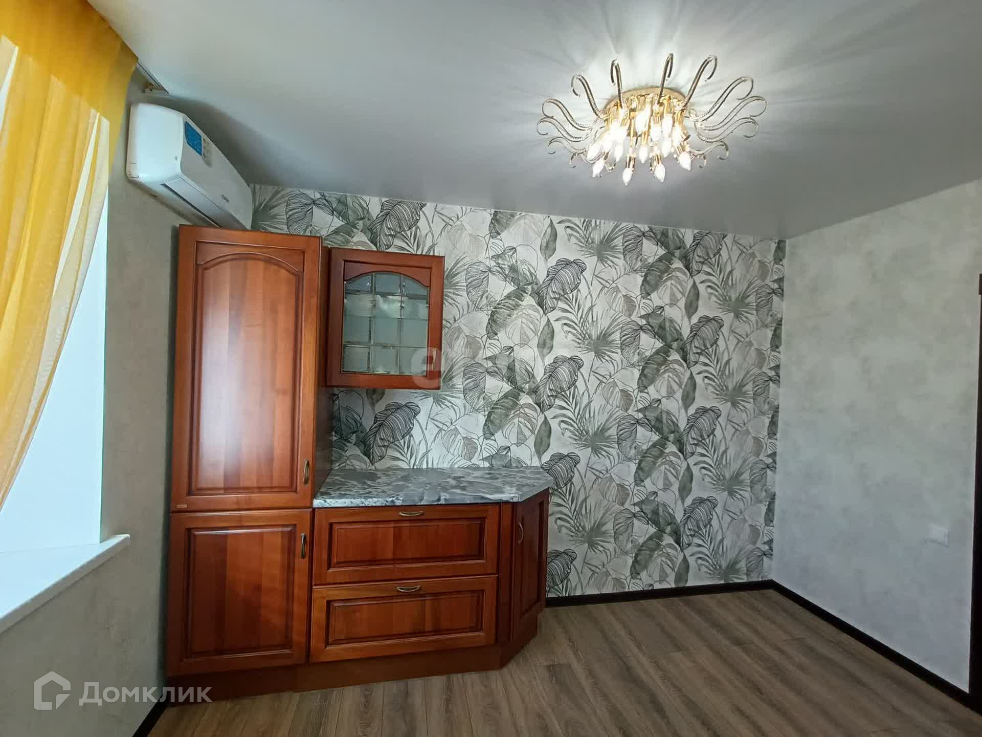 Стены ровные, потолки натяжные, окна из ПВФ профиля, на полах качественный ламинат, в ванной комнате кафельная плитка. В кухонной зоне - гарнитур со встроенной сложнобытовой техникой, обеденный стол, стулья. В прихожей встроенный шкаф, сочетающийся со всей идеей общего пространства.