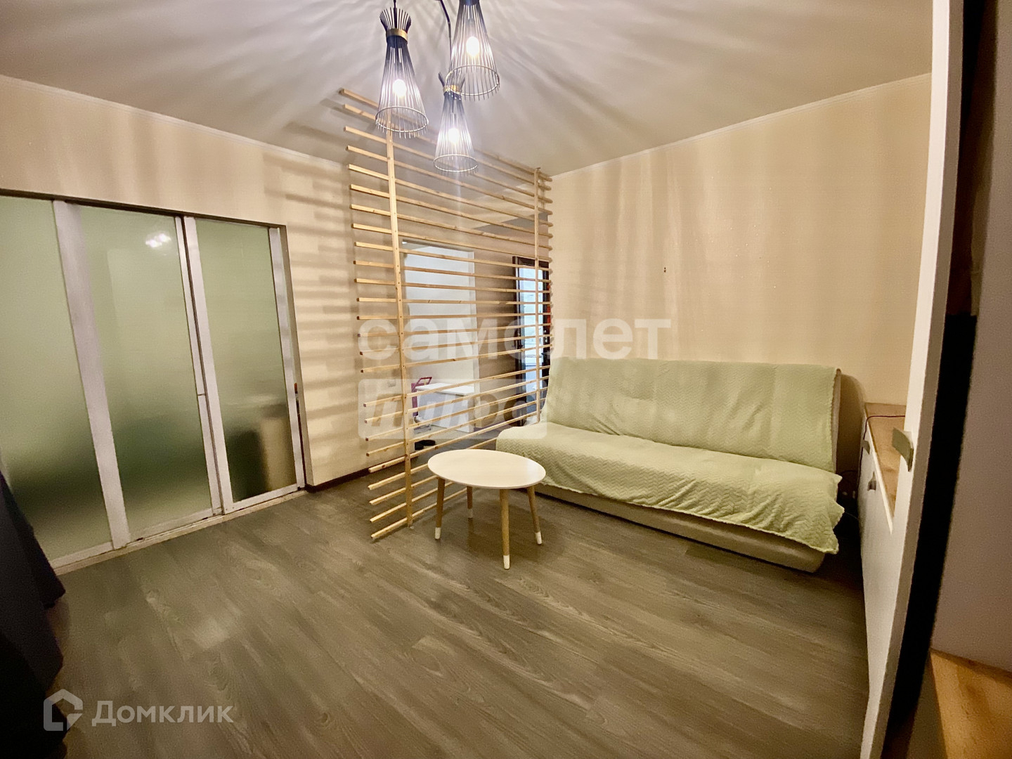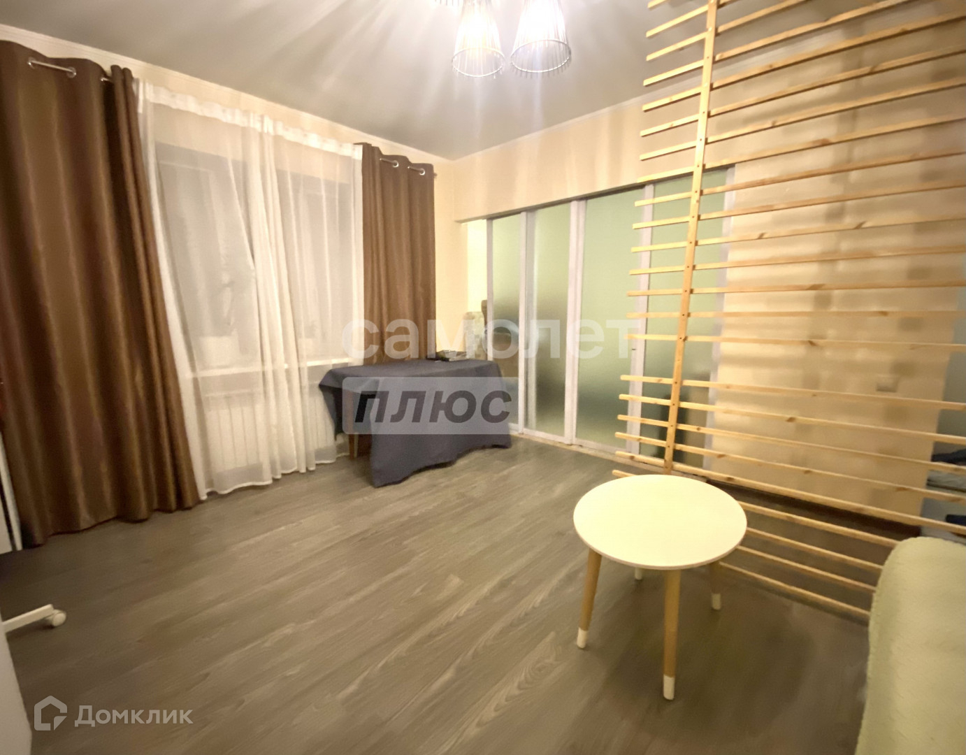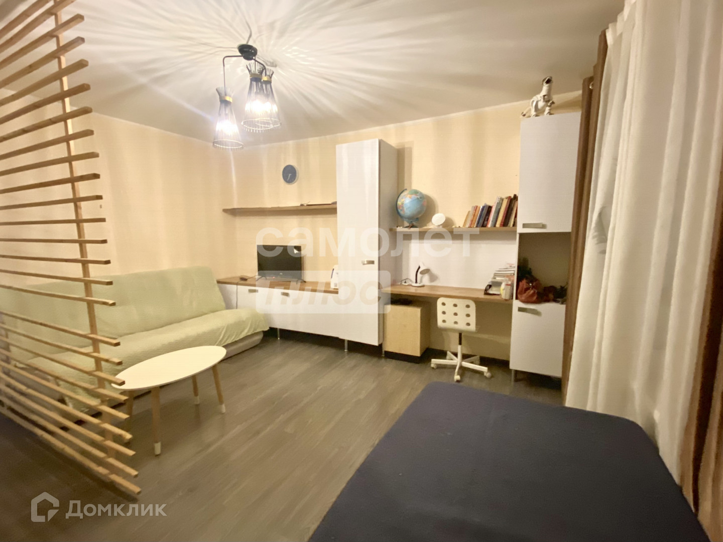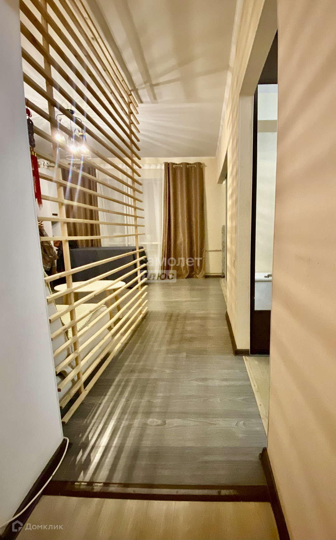- поклеены современные обои, на полу ламинат,