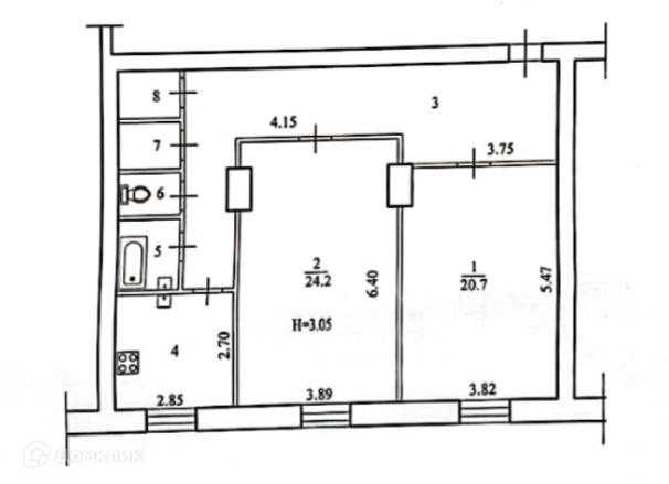 Высота потолков - 3,05м