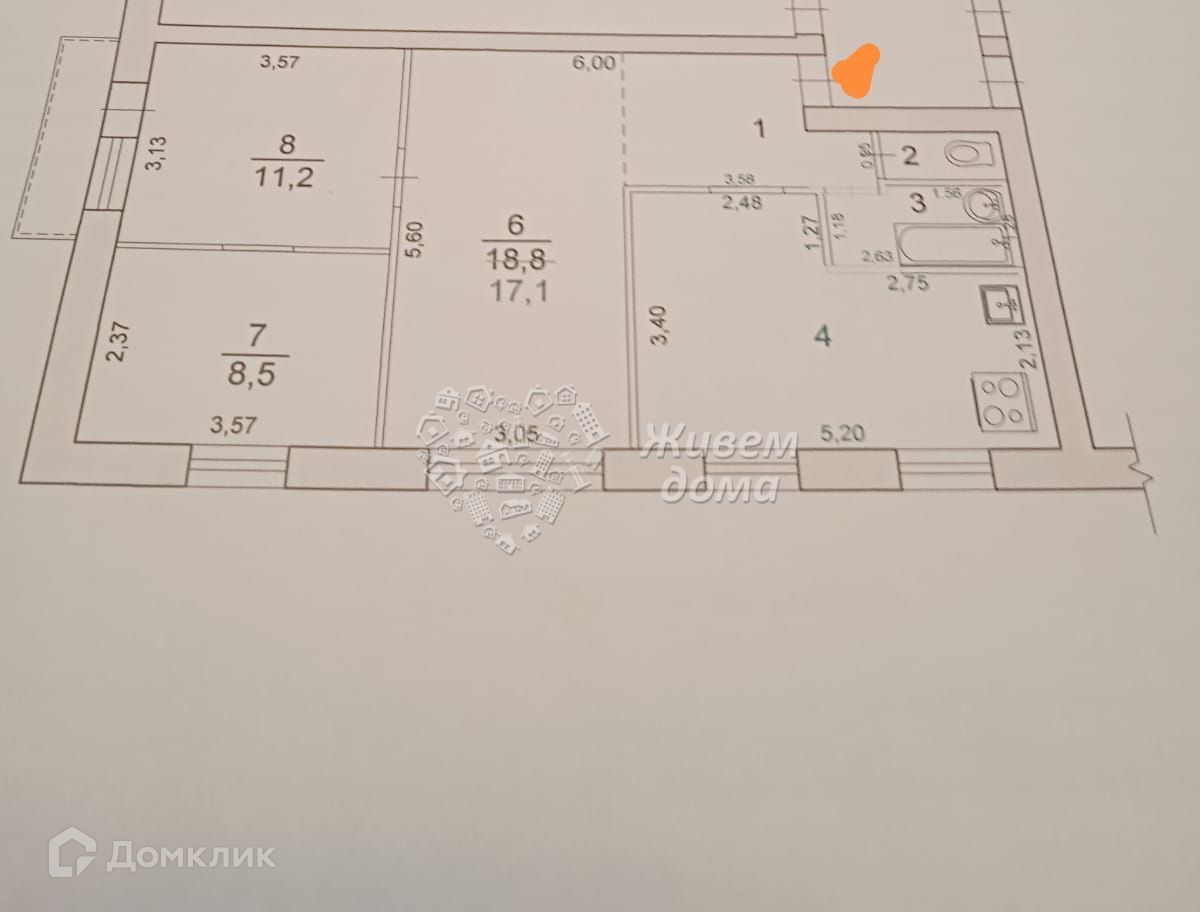 Комнаты: 17.7 + 8.5 + 11.2 + 8.2 метров
