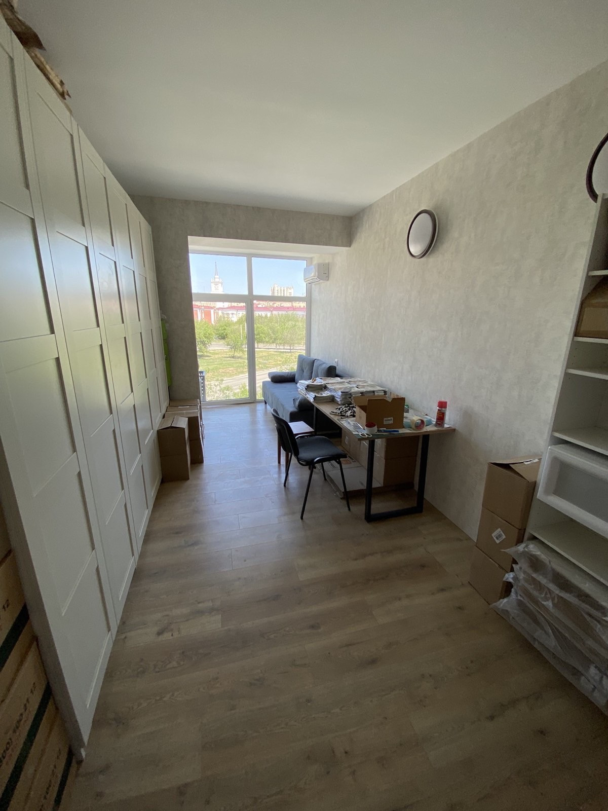 Аппартаменты Каланча. Офисное помещение в самом центре города 19,3м. С новым ремонтом: обои, ламинат, сплит система, двери. В туалете унитаз, раковина, выведены коммуникации под душевую, на стенах плитка. Покажем в любое время. Красивый вид из окна на вокзал, новостройки, Каланчу, часть собора.