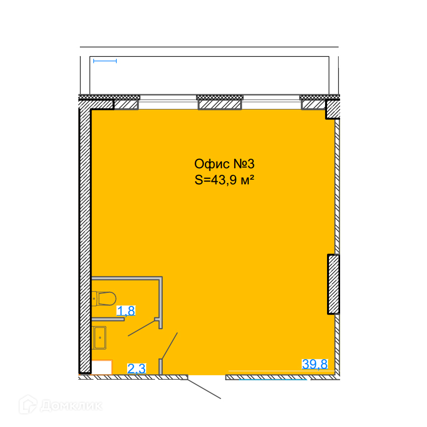 Общая площадь 43.9 м2