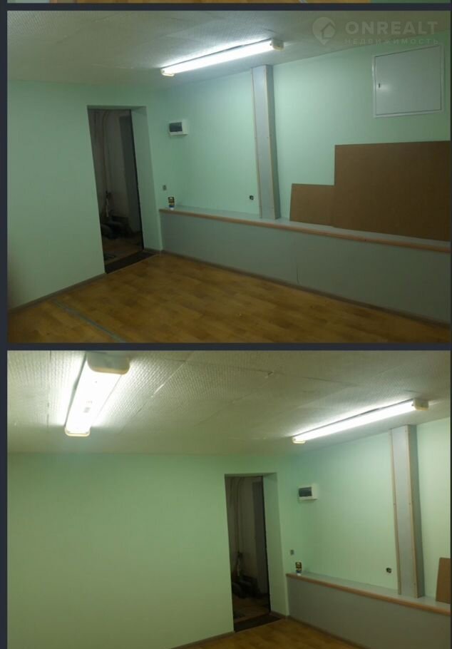 15м2 - 450 000р (на фото белые стены)по коридору 20м от входа. Эта часть коридора требует ремонта.