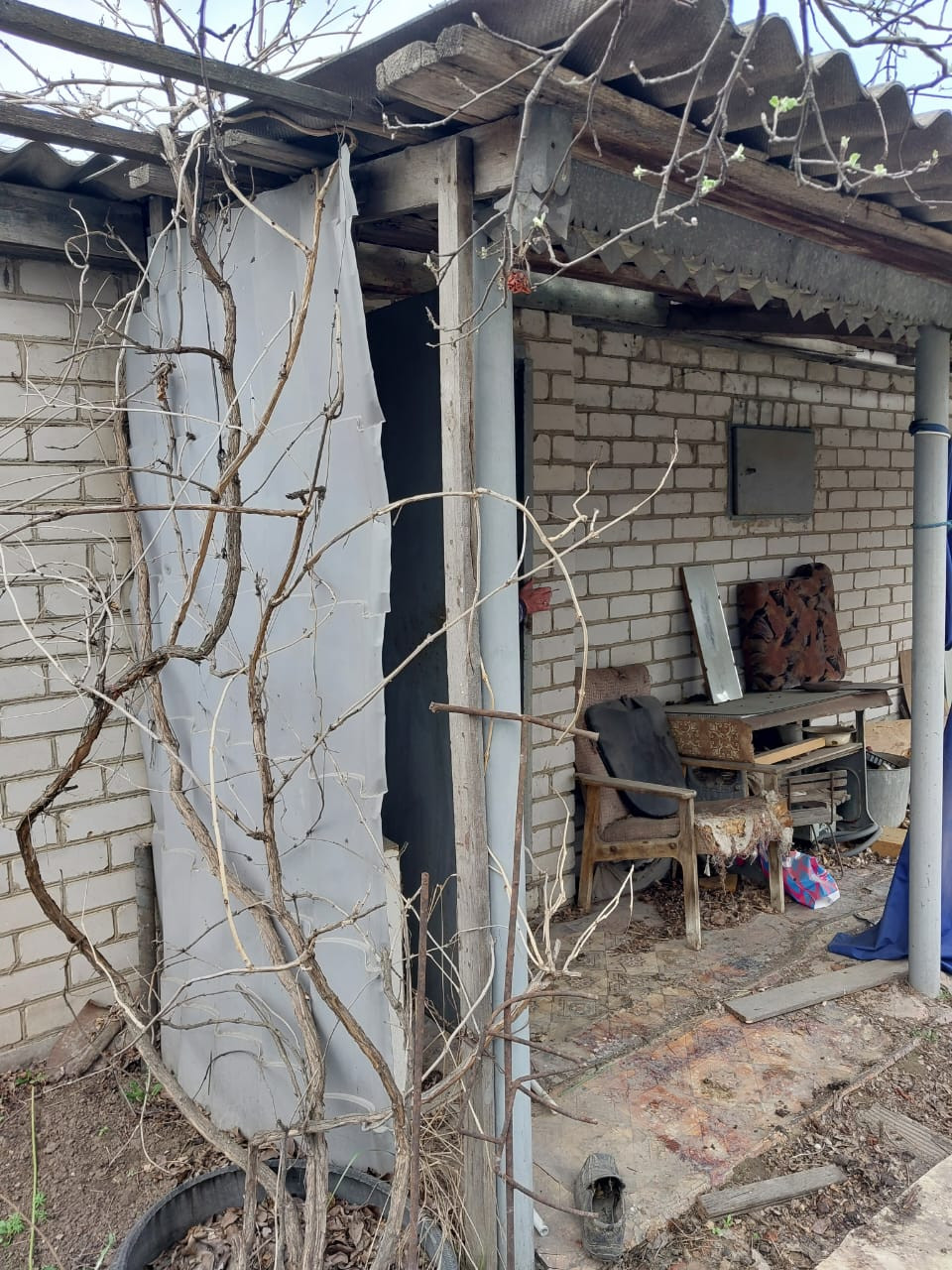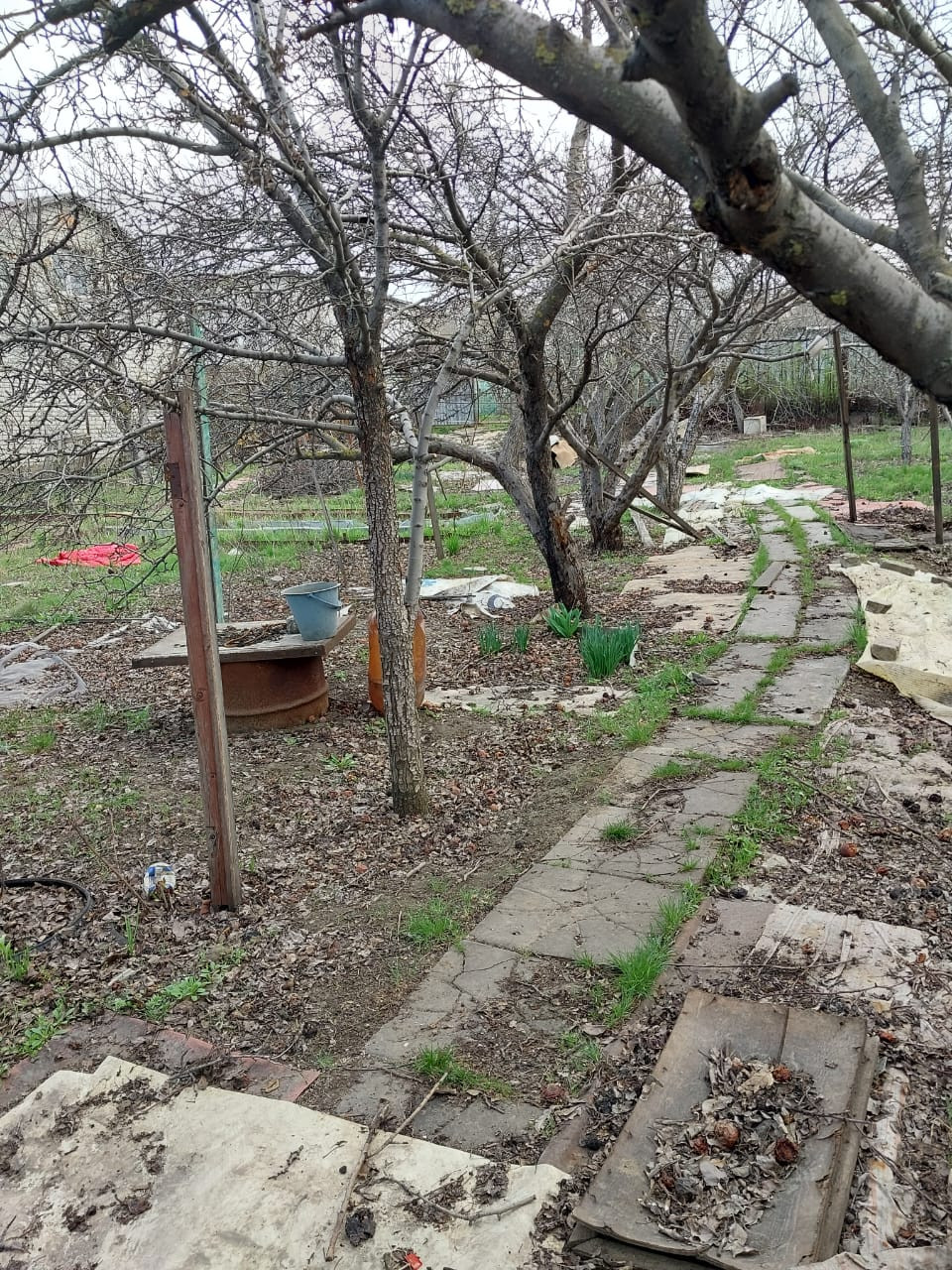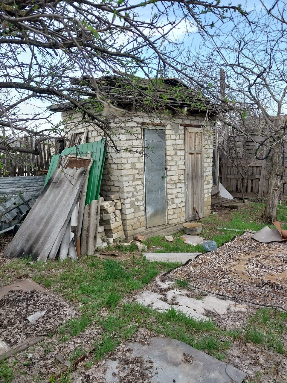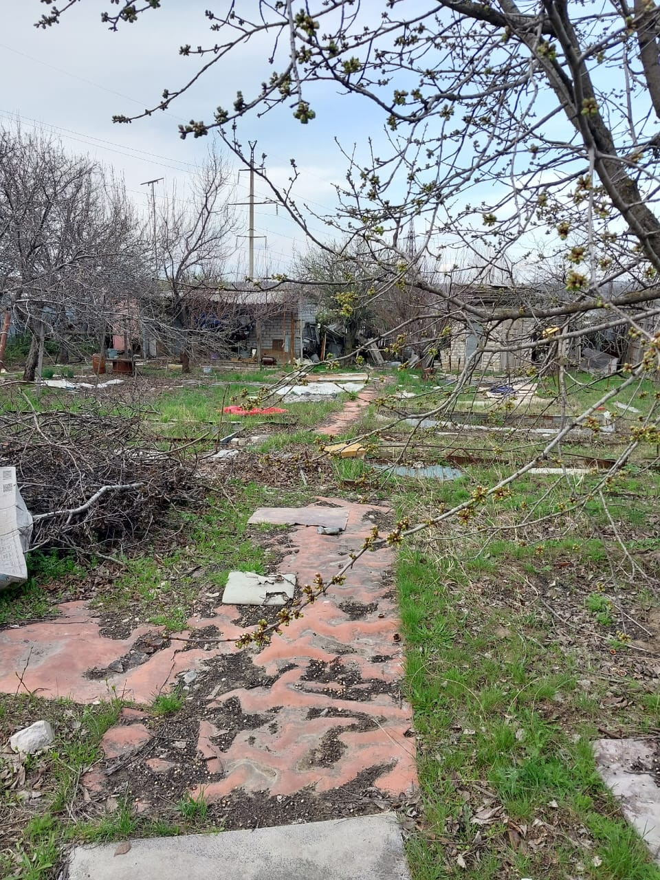 На участке имеется: площадка для авто, кирпичный хозблок, площадью 20 кв.м. с навесом, туалет, емкость для воды, заведено электричество и питьевая вода, установлены приборы учета, газ подведен к соседнему участку. Дорожки по участку вымощены камнем. Есть плодоносящие фруктовые деревья и кустарники: 5 яблонь, 3 груши, черешня, терн, алыча, слива, орех, виноград, крыжовник, смородина.