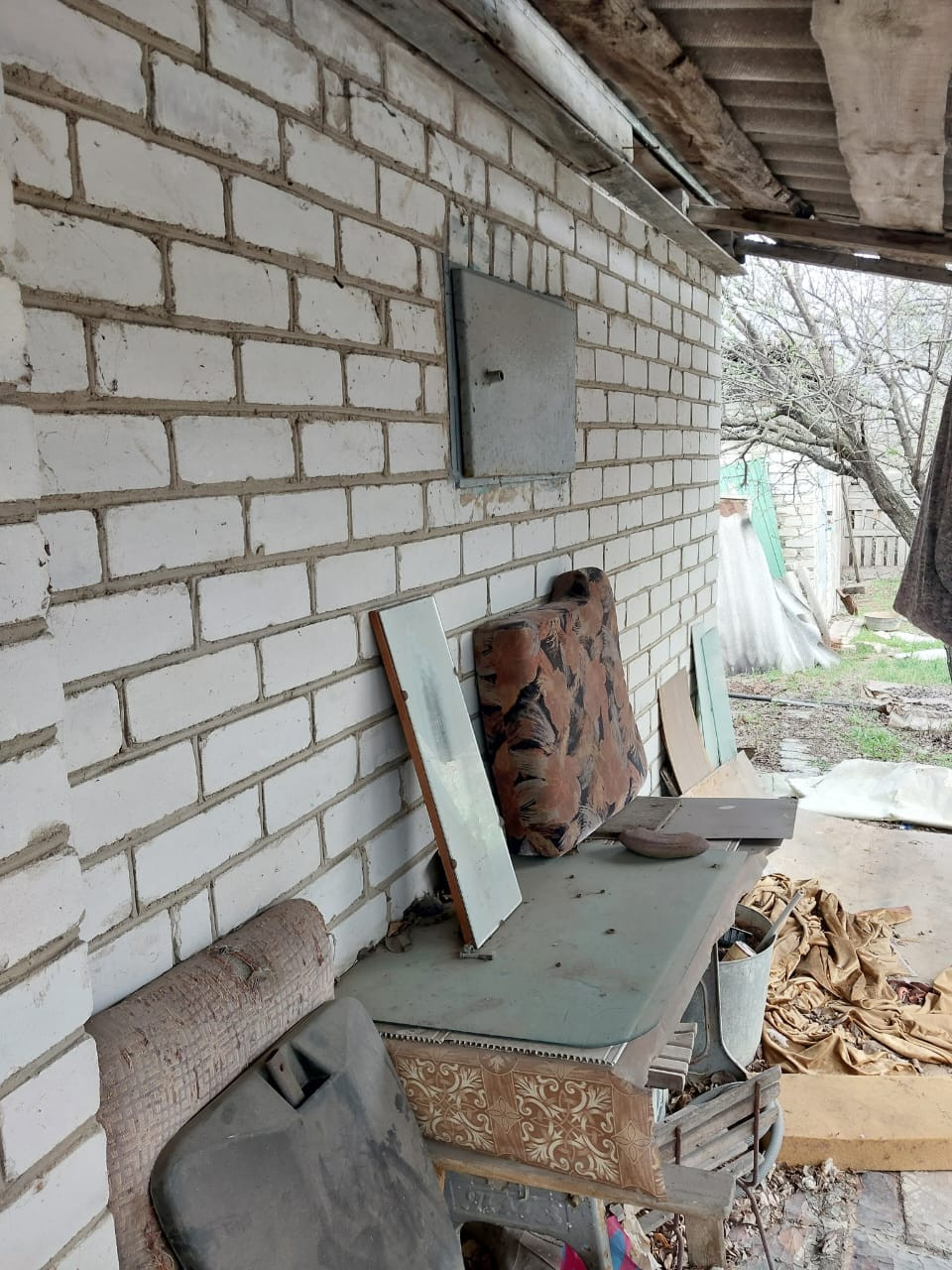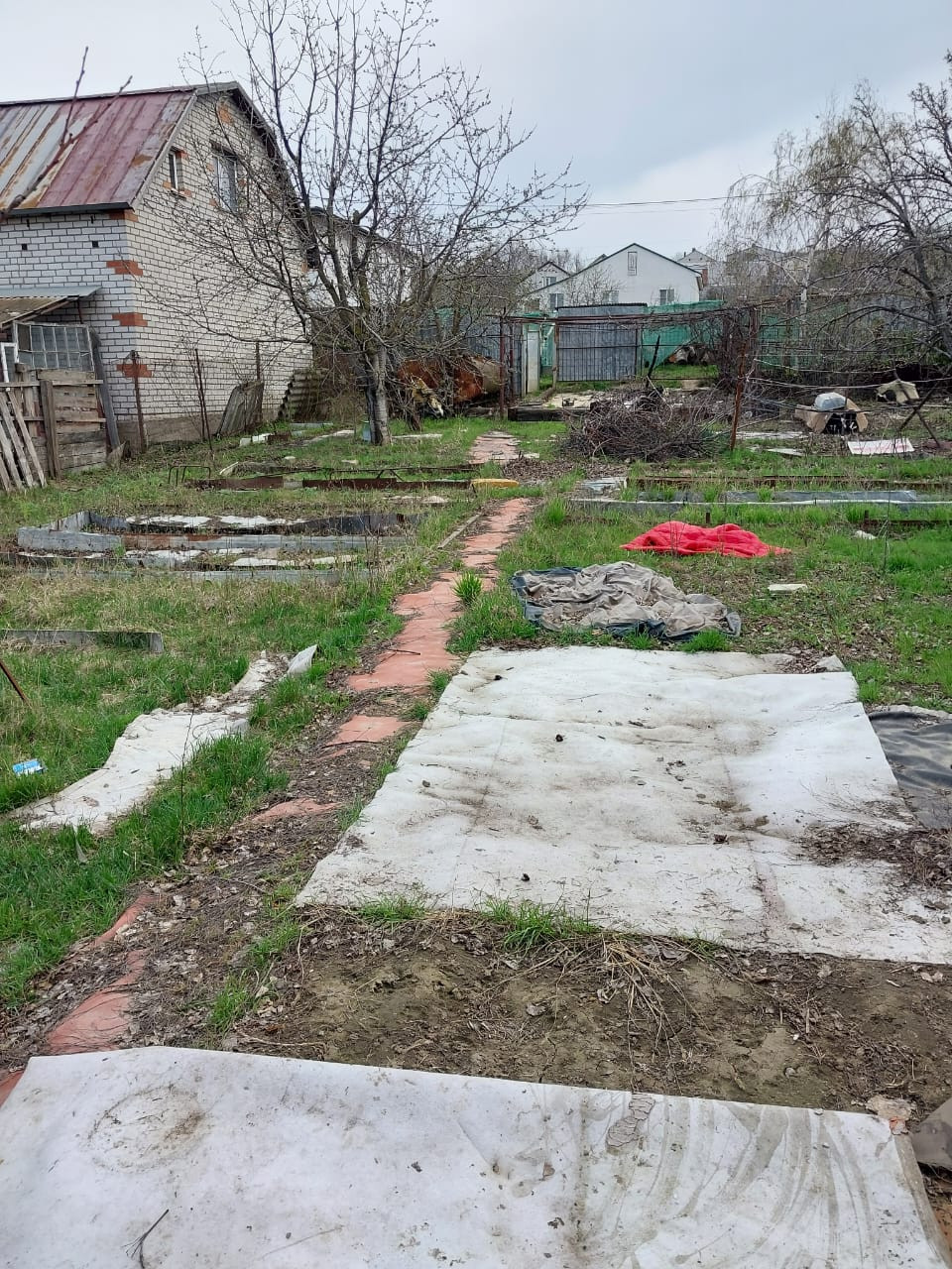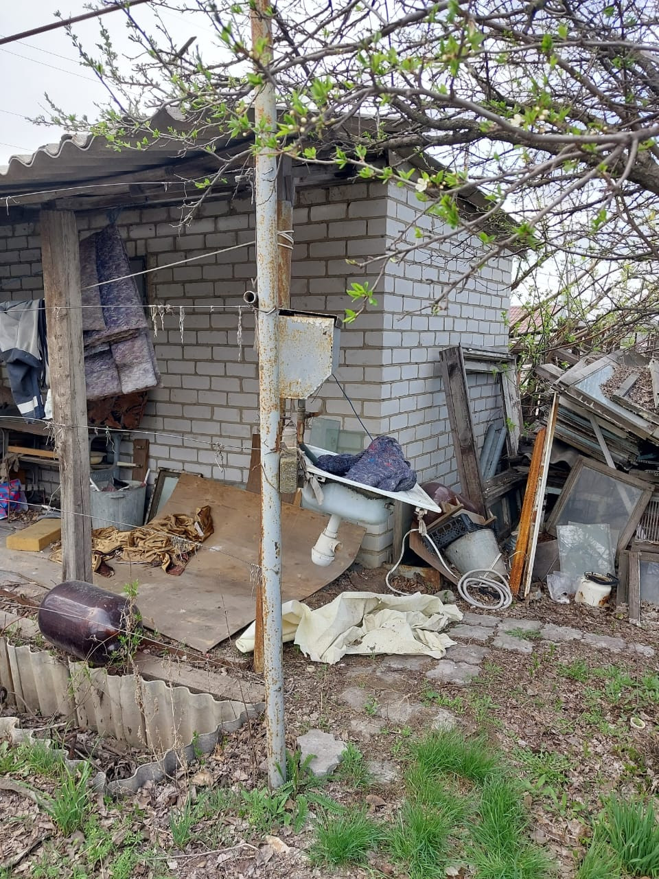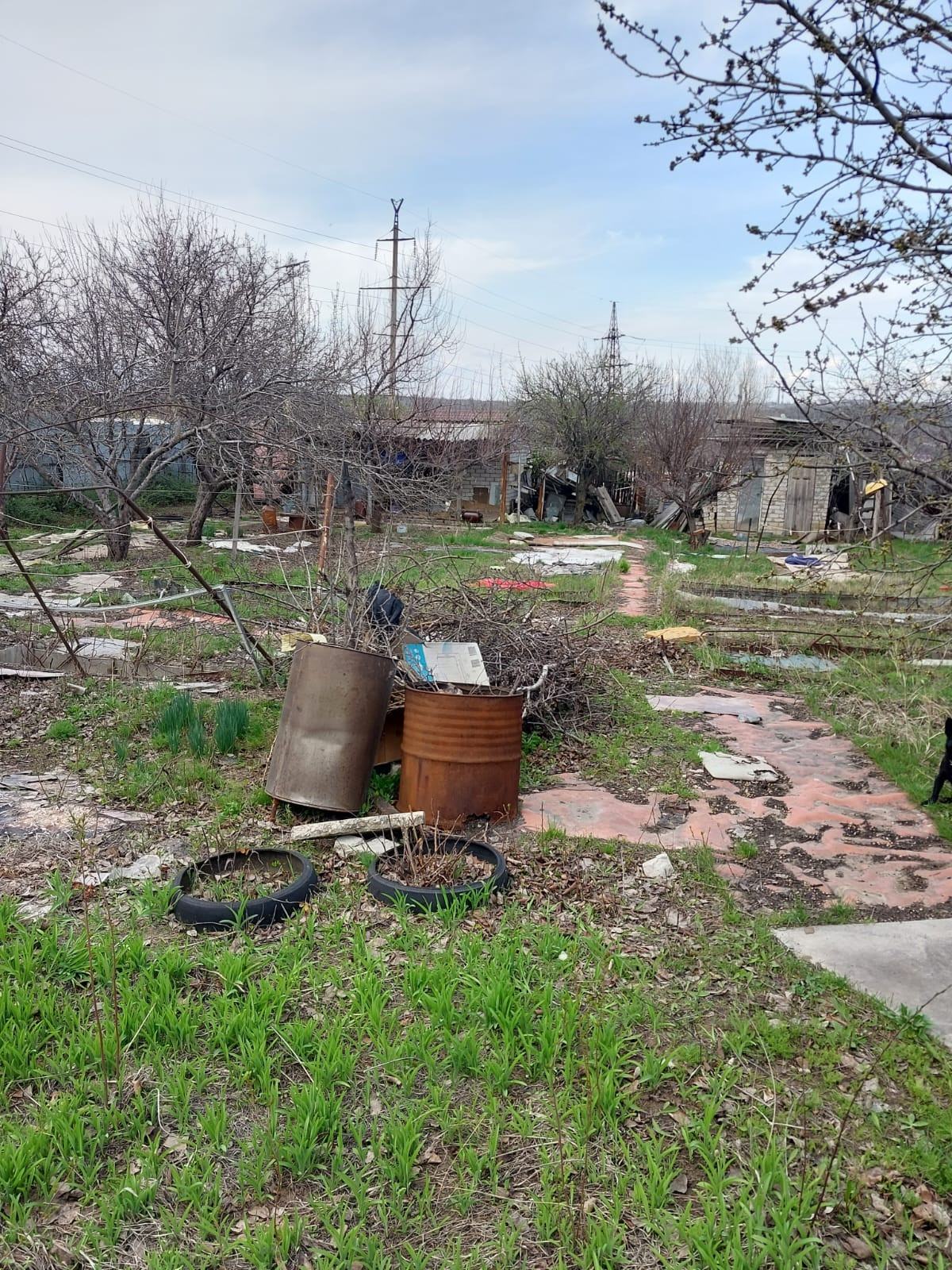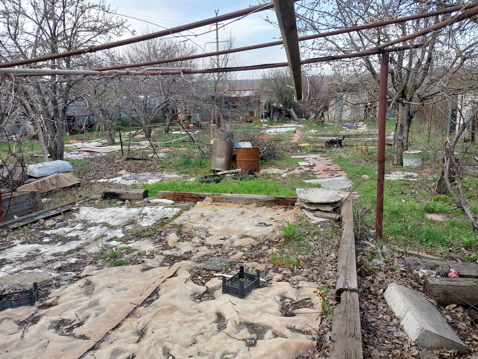 На участке имеется: площадка для авто, кирпичный хозблок, площадью 20 кв.м. с навесом, туалет, емкость для воды, заведено электричество и питьевая вода, установлены приборы учета, газ подведен к соседнему участку. Дорожки по участку вымощены камнем. Есть плодоносящие фруктовые деревья и кустарники: 5 яблонь, 3 груши, черешня, терн, алыча, слива, орех, виноград, крыжовник, смородина.