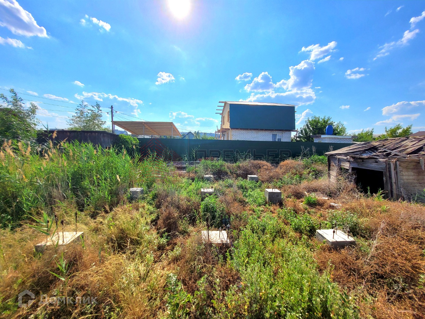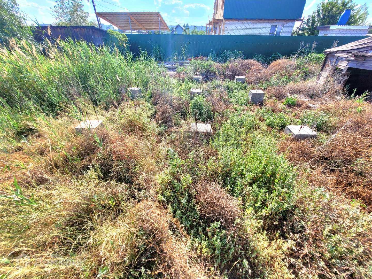 на участке имеется фундамент в видео бетонных свай под строительство дома (10 на 11 м)