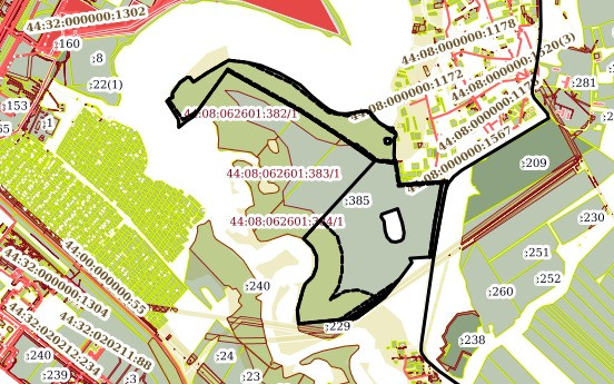 Земельный участок, Кад. №: 44:08:062601:385, находится примерно в 550 м, по направлению на юго-запад от ориентира. Площадь: 827578.00 кв. м.