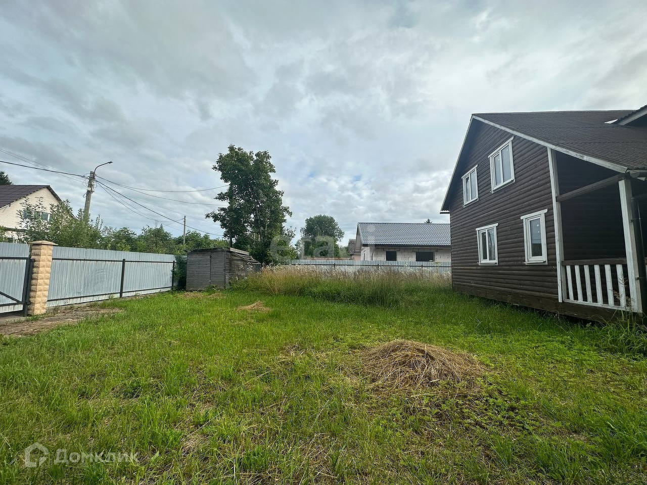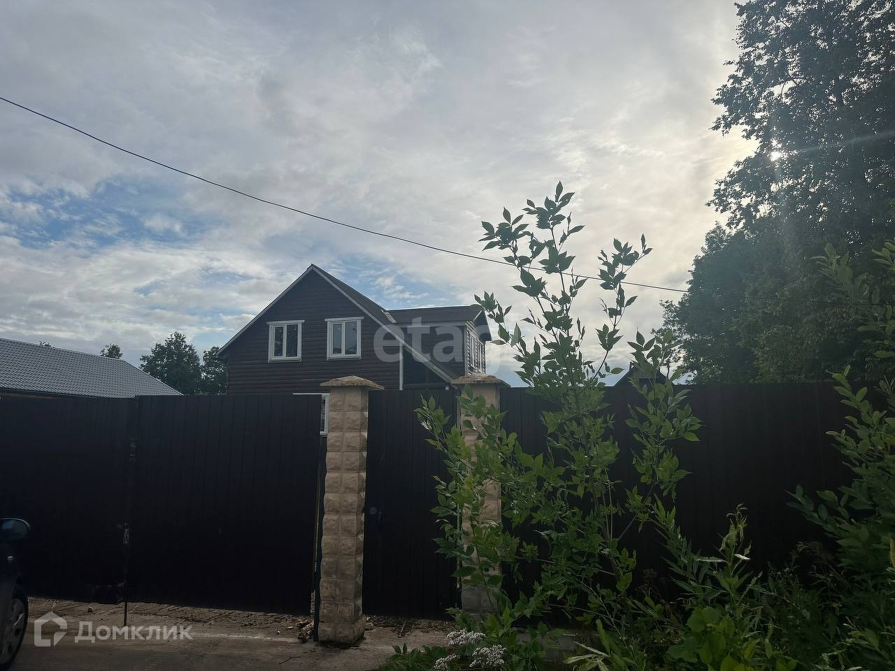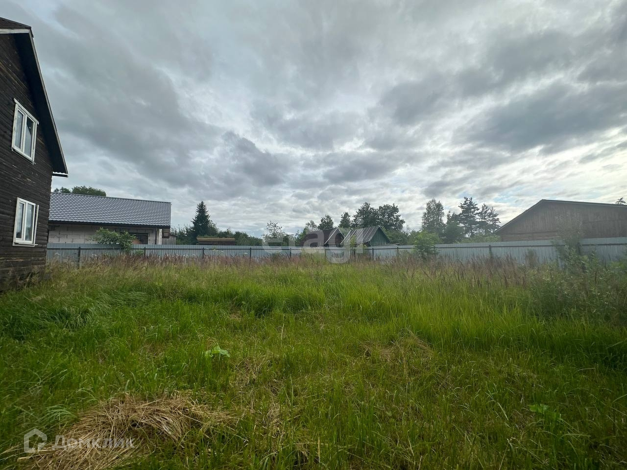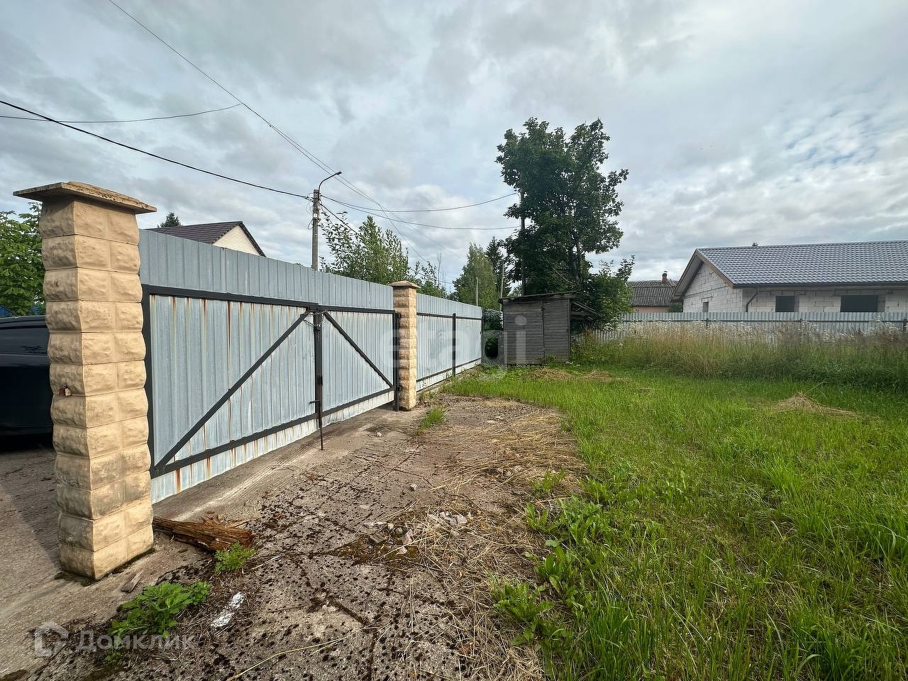Участок огорожен забором из профлиста. Есть парковочное место.