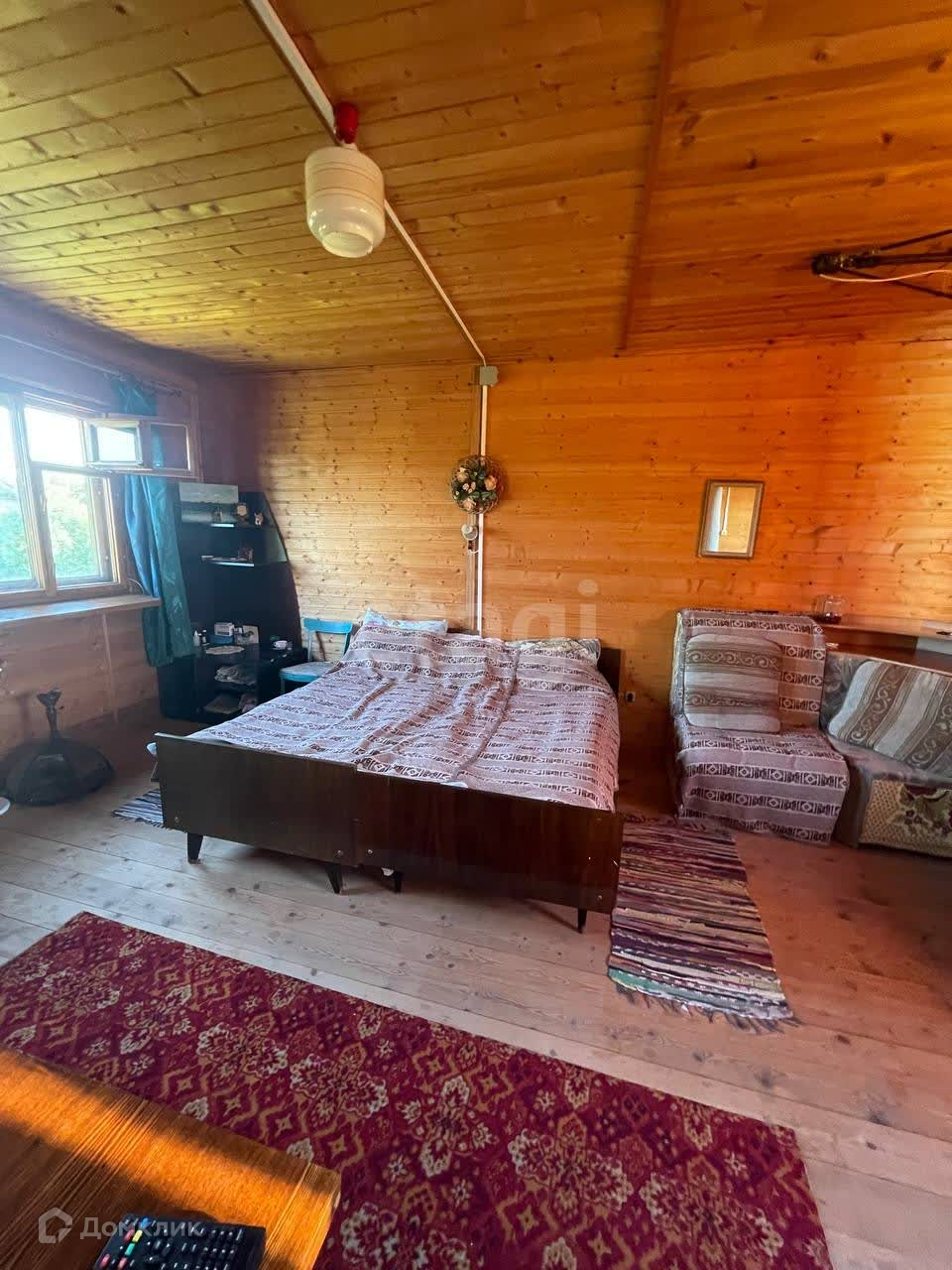 Высокие потолки, полностью обшитый внутри дом, ремонта не требует. Потрясающий запах дерева в помещениях! Также хозяин дома полностью заменил проводку, у каждого кресла и кровати есть выключатели или розетки. Лестница оборудована поручнями, полностью освещена, также на лестницу выведен выключатель.
