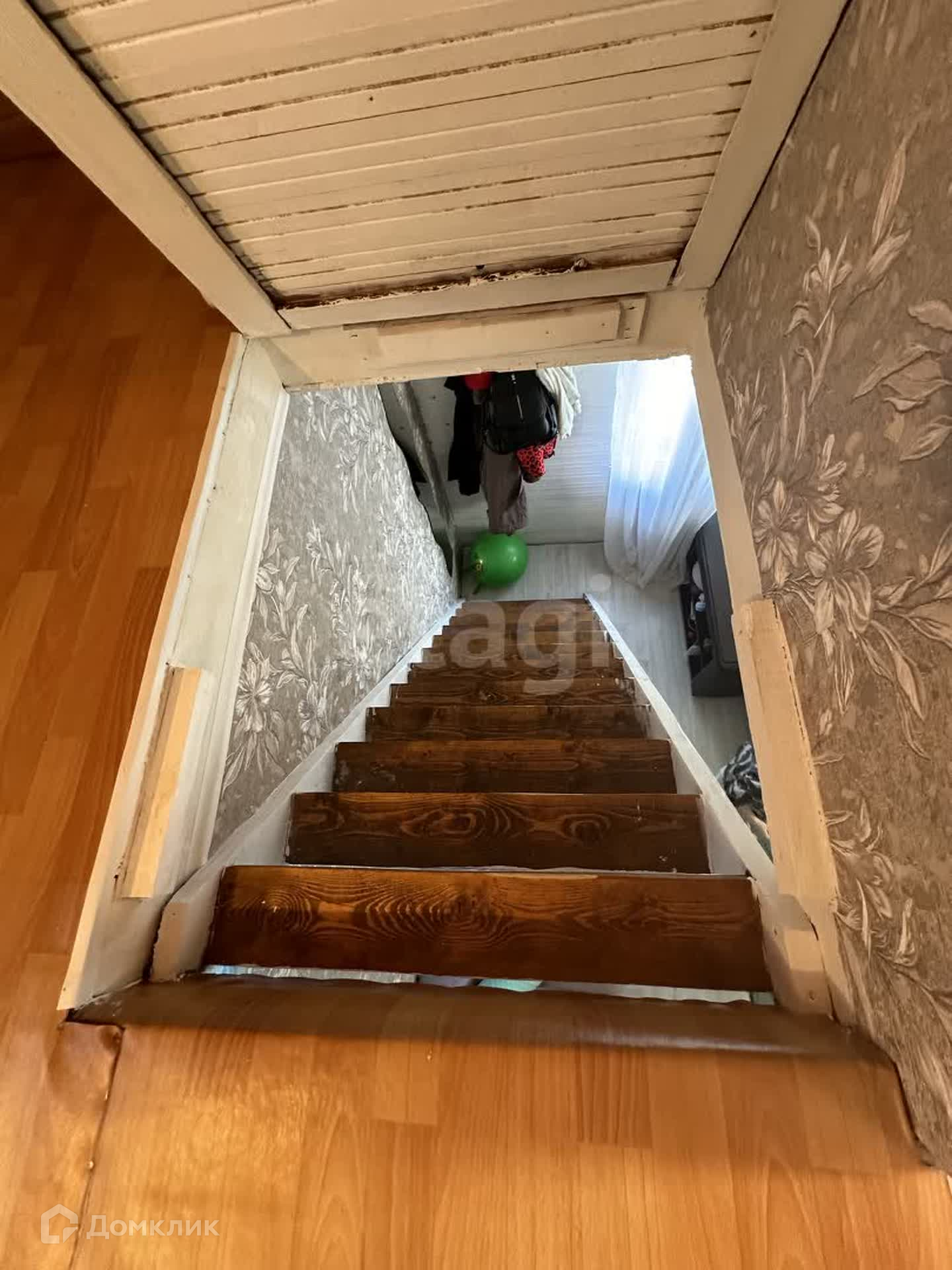 В доме два этажа (три комнаты и кухня ), площадь всего дома составляет 36 квадратных метра.