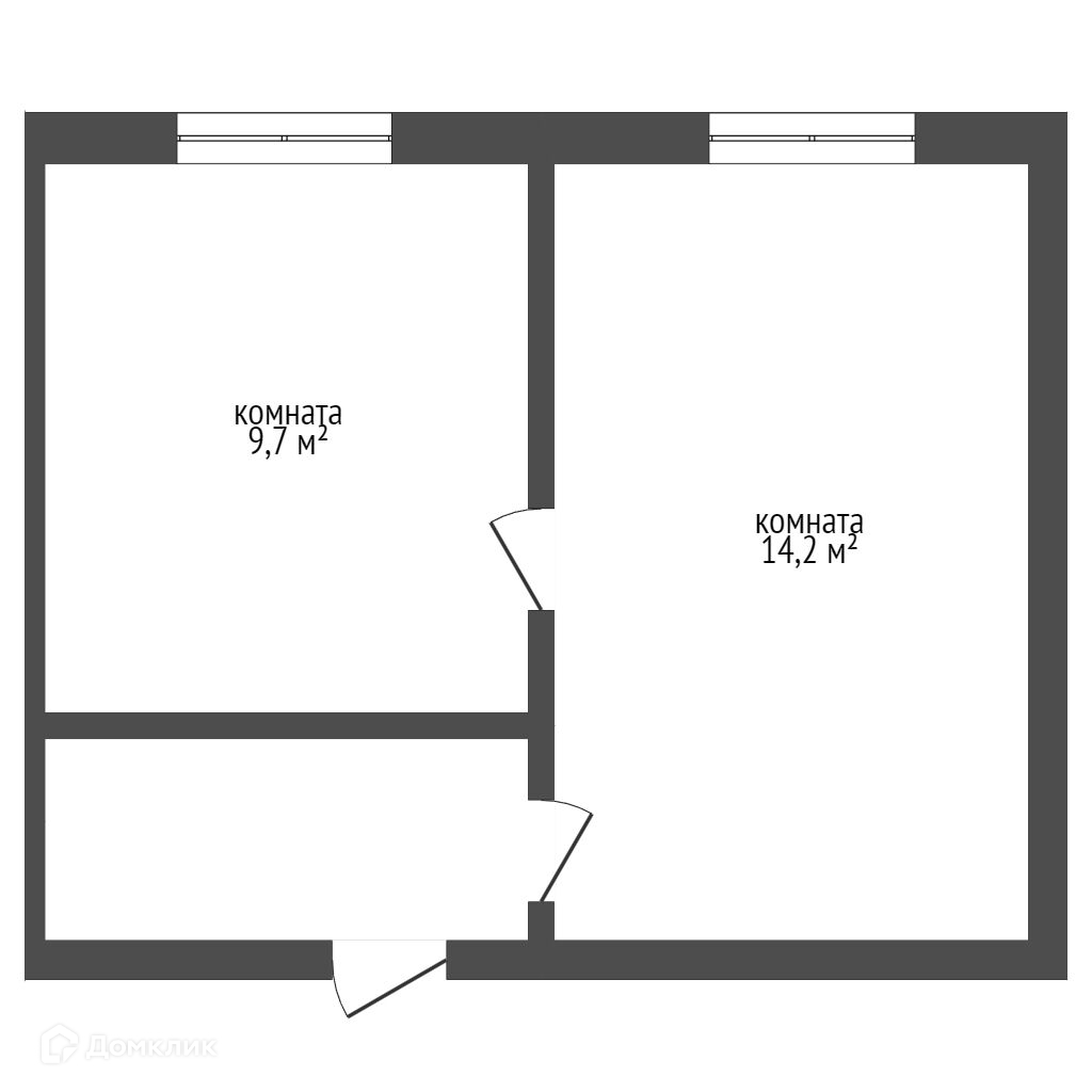 Одна комната 14,2 кв.м, вторая 9,7 кв.м.