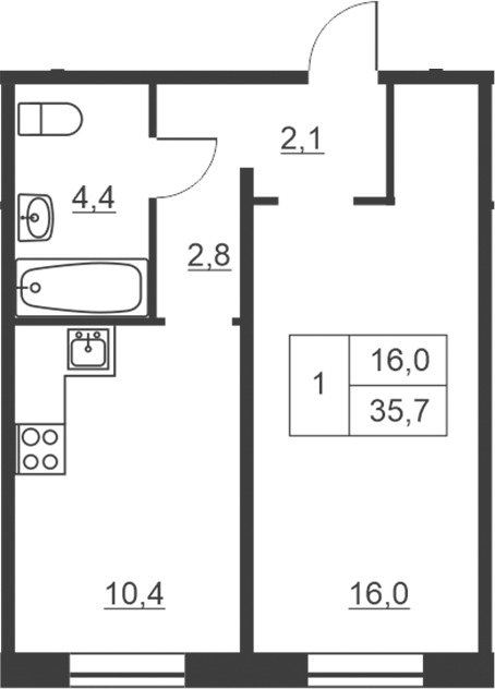 Общая площадь 35.7 м2