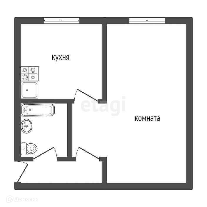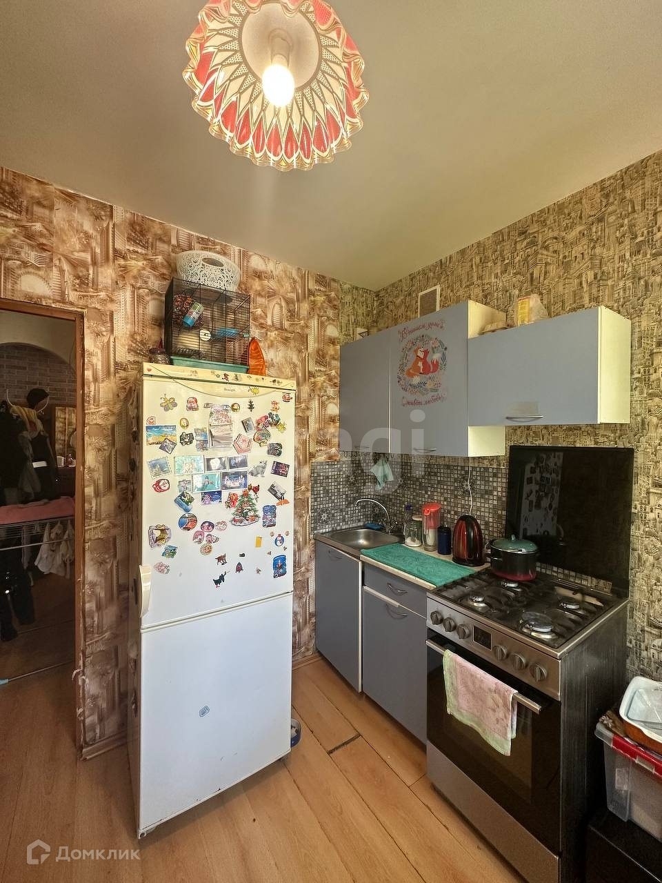 В квартире остается кухонный гарнитур и газовая плита.