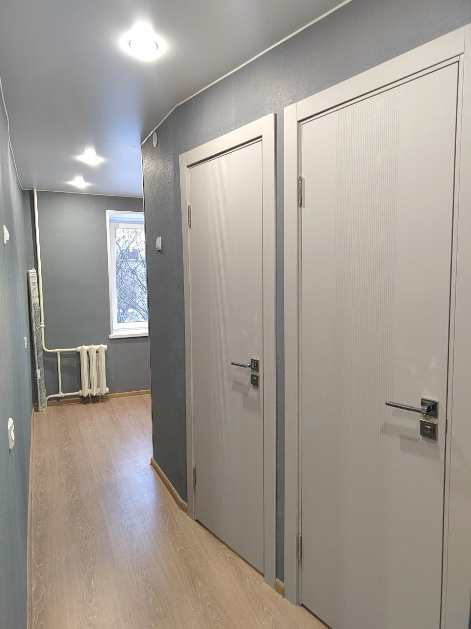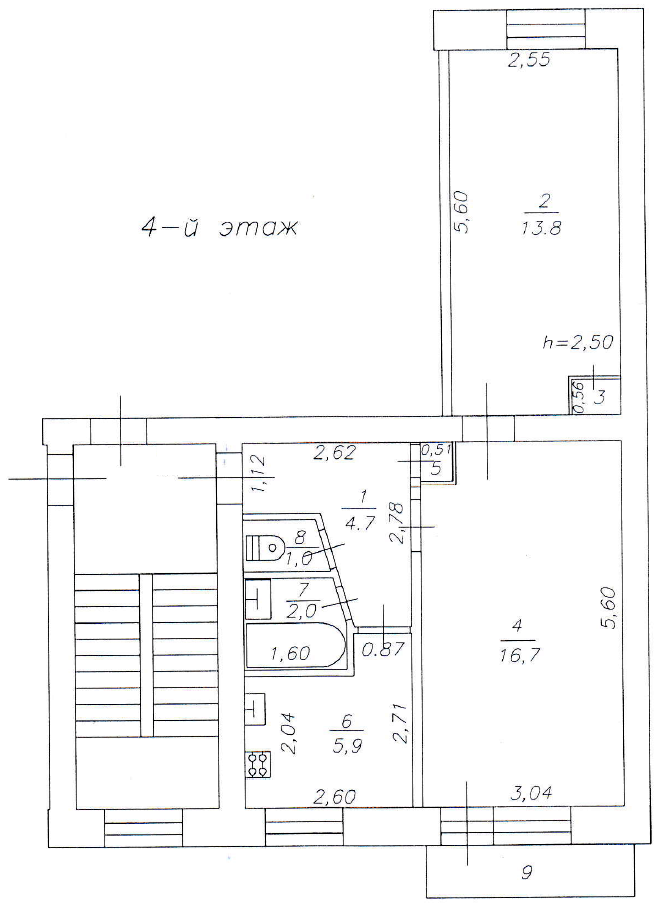 Практичная планировка. Просторные комнаты 16.7 и 13.8 м². Выход на балкон из большой комнаты. В результате установки перегородки комнаты изолированы, увеличен коридор, есть возможностью оборудовать полноценную гардеробную. Кухня компактная, 5.9 м². Сан. узел раздельный.