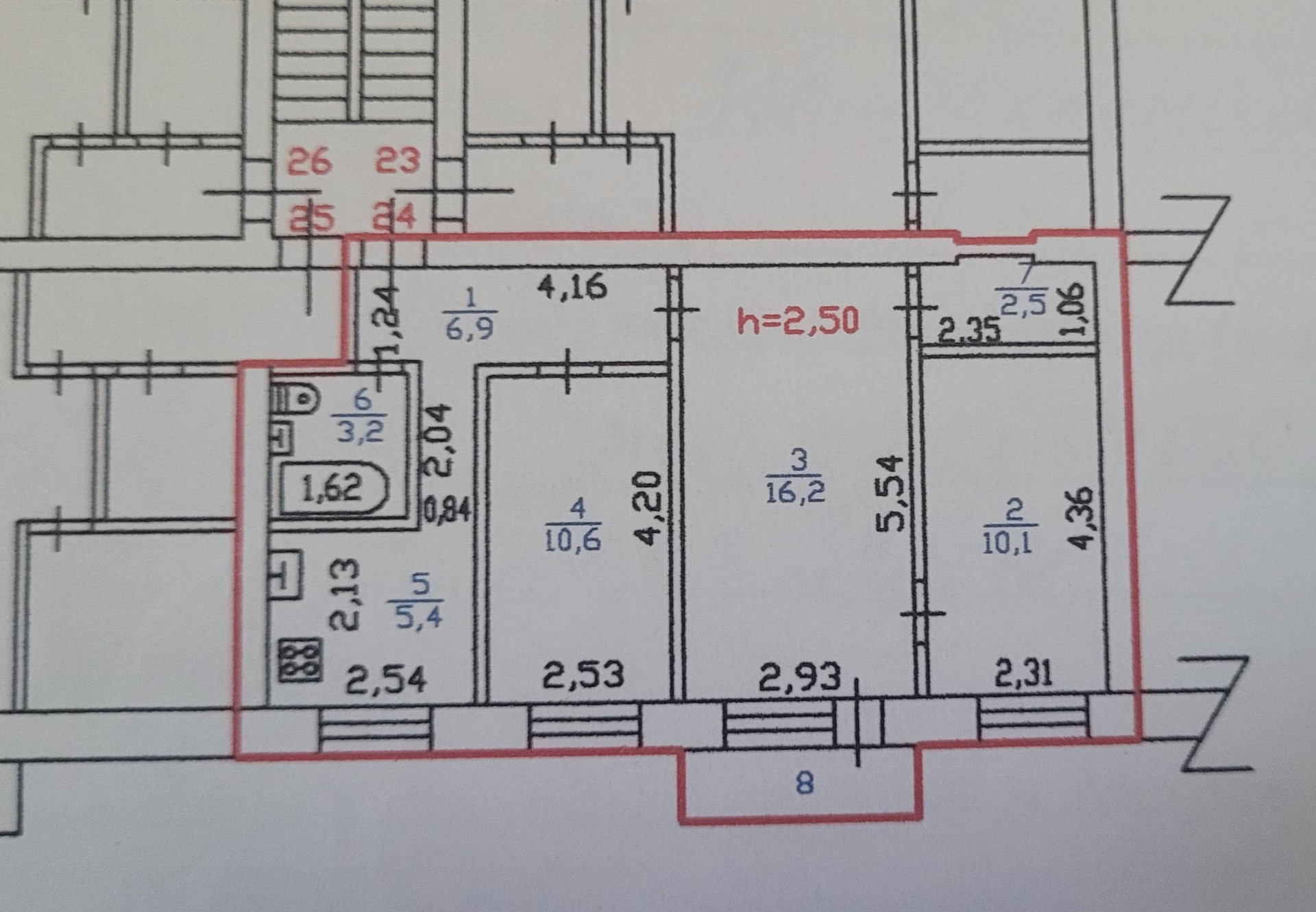 Общая площадь 54.9 м2