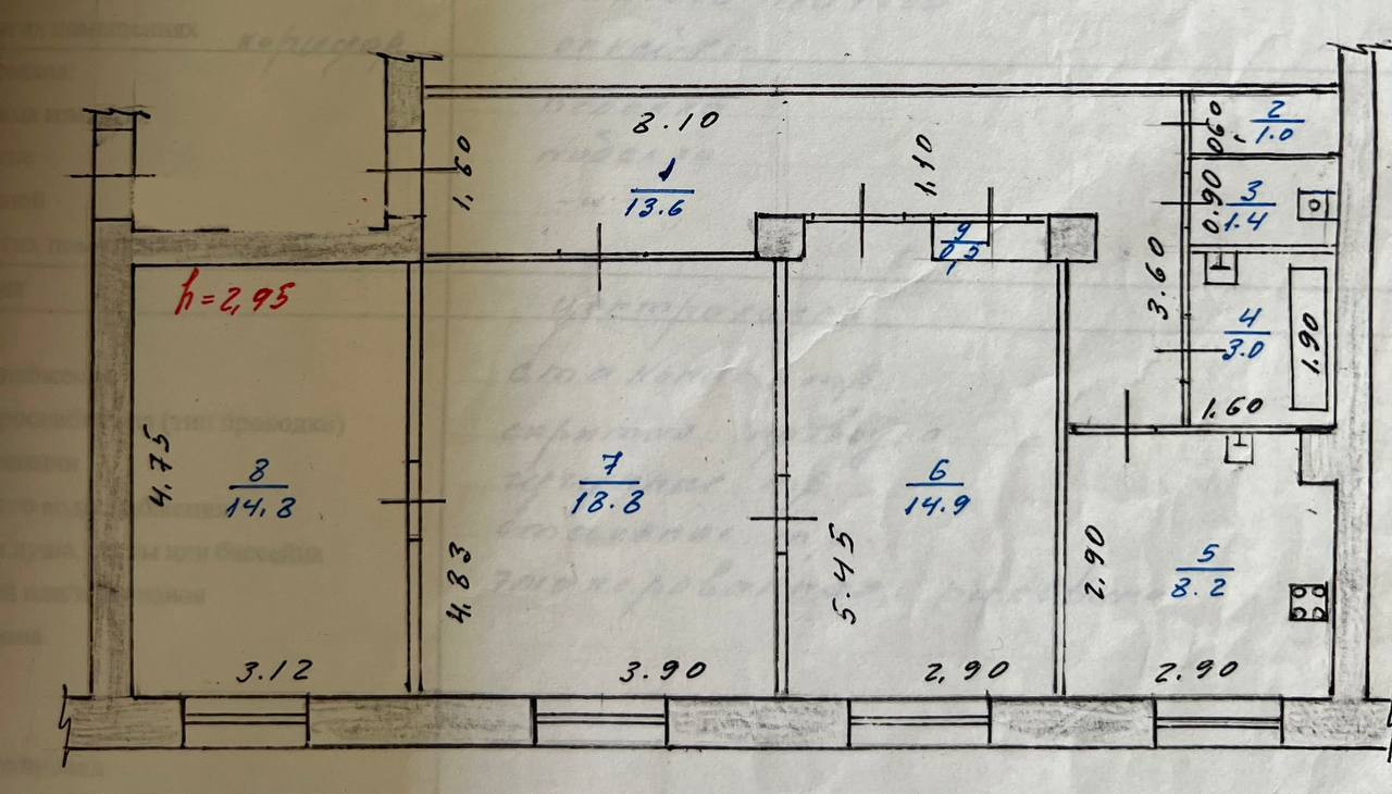 Жилая площадь 48.5 м2