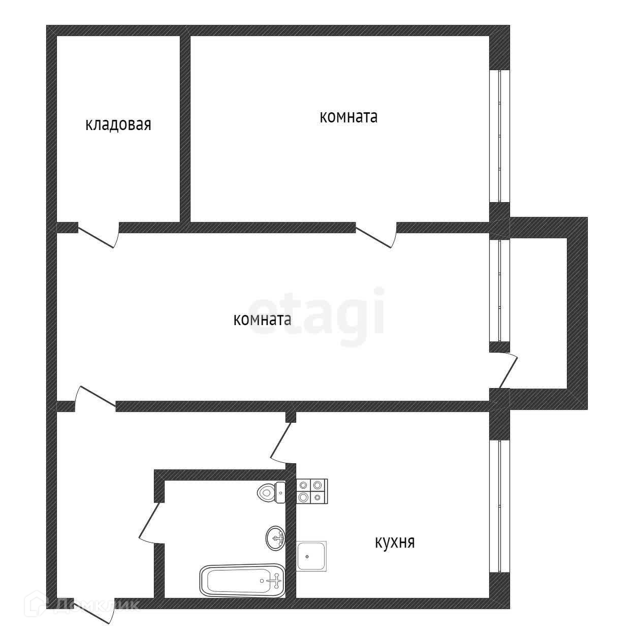 2-комнатная квартира, 41.7 м2, этаж 4 / 5, на продажу в Волхове, Волгоградская улица, 17