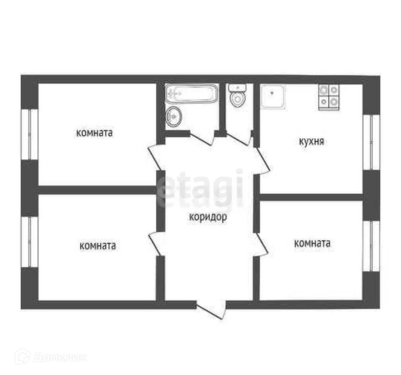 Внутреннее пространство квартиры отличается продуманной и функциональной планировкой. Три просторные и изолированные комнаты с высокими потолками, раздельный санузел, уютная кухня и вместительный коридор - все это создает ощущение простора и гармонии.