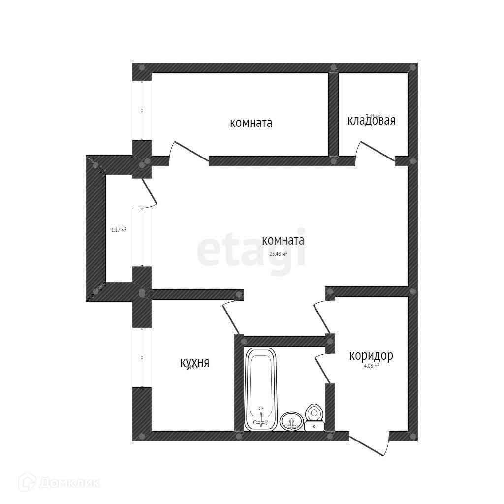 Общая площадь 44.12 м2