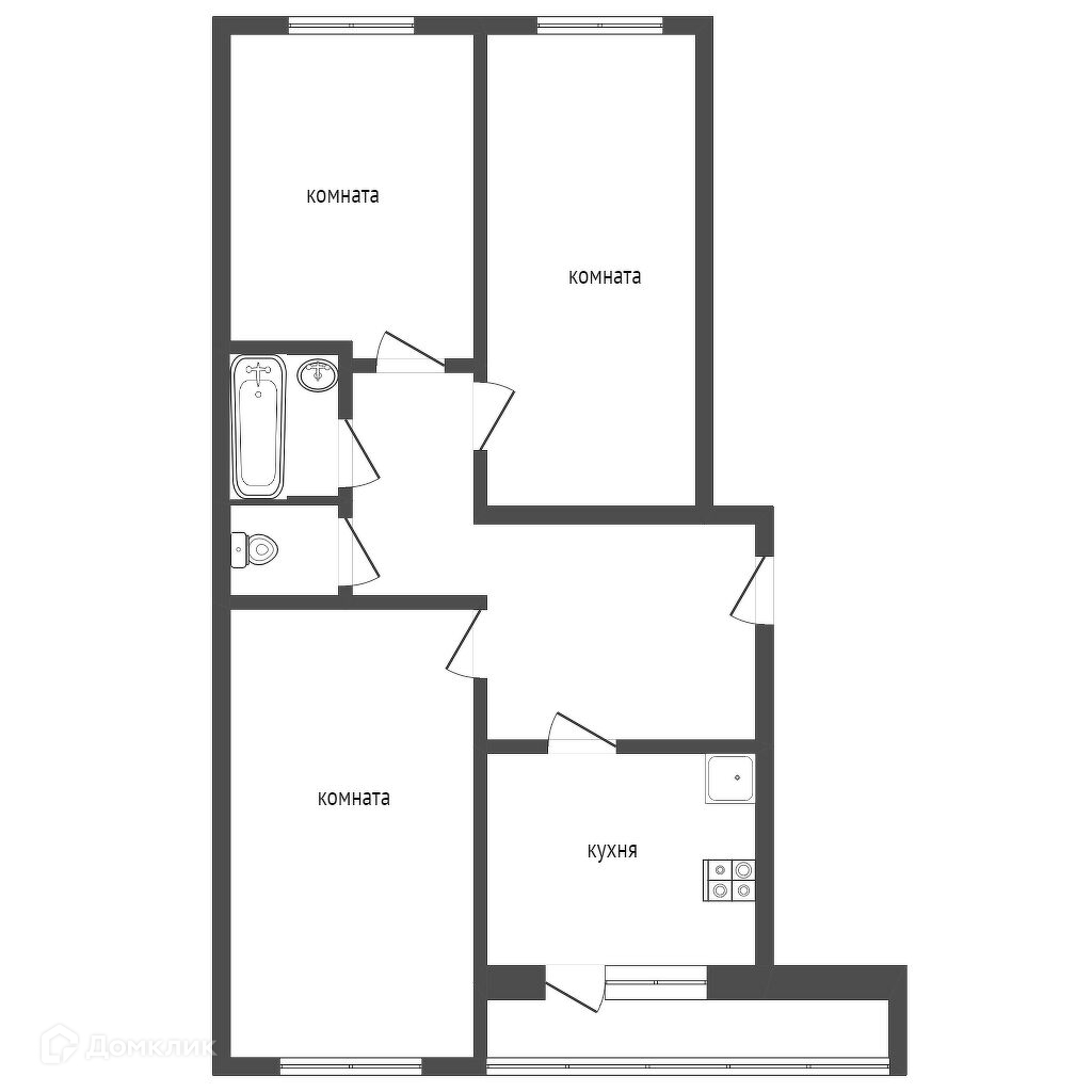 В квартире все комнаты раздельные, в большой комнате есть раскладной диван угловой, стенка, телевизор, шкаф и компьютерный стол. Во второй комнате, есть односпальная кровать, раскладной диван, шкаф и так же компьютерный стол. В третьей комнате есть двуспальная кровать, шкаф и телевизор. Кухня большая оборудованная гарнитуром, есть все необходимое, холодильник, микроволновая печь, телевизор и выход на балкон. Санузел раздельный, есть стиральная машина. Коридор не маленьких размеров, очень просторный.