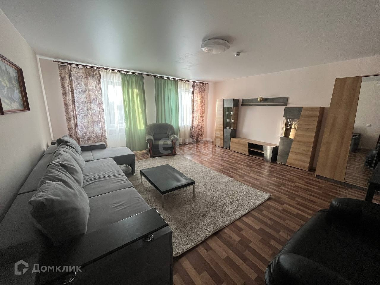 В одной комнате гостиной, располагается огромный угловой диван, журнальный столик, кресло, стенка с местом под тв, большой вместительный шкаф. Во второй комнате шикарная двуспальная кровать, комод, тумба, шкаф для хранения одежды, телевизор. Третья комната пустая, есть матрас. Кухня оборудованная гарнитуром, есть все необходимое, так же есть стол, стулья, холодильник, электрический чайник, микроволновая печь. Санузел раздельный, есть стиральная машина. Коридор просторный, есть прихожая система, обувница.