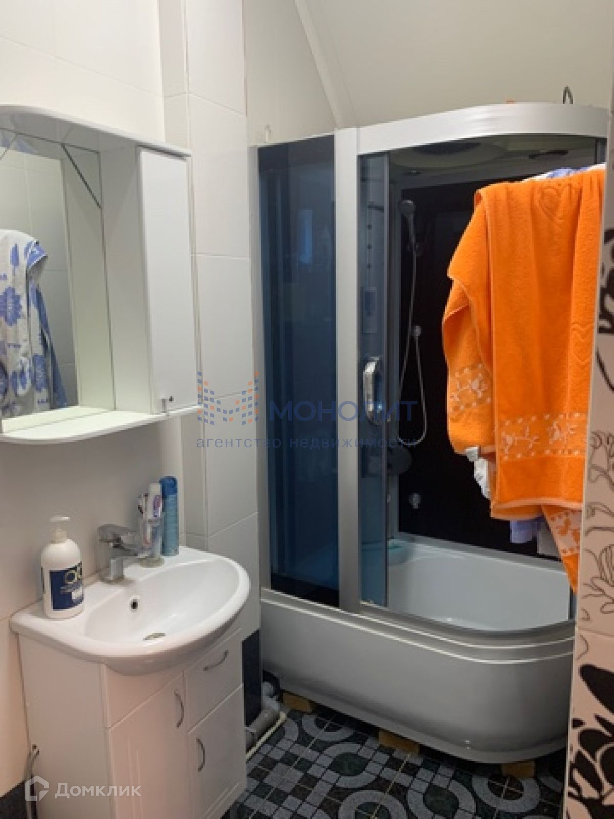 На первом этаже есть теплый пол, кухня-гостиная, комната, санузел с душевой кабиной. Здесь имеется два входа: зимний и летний.
