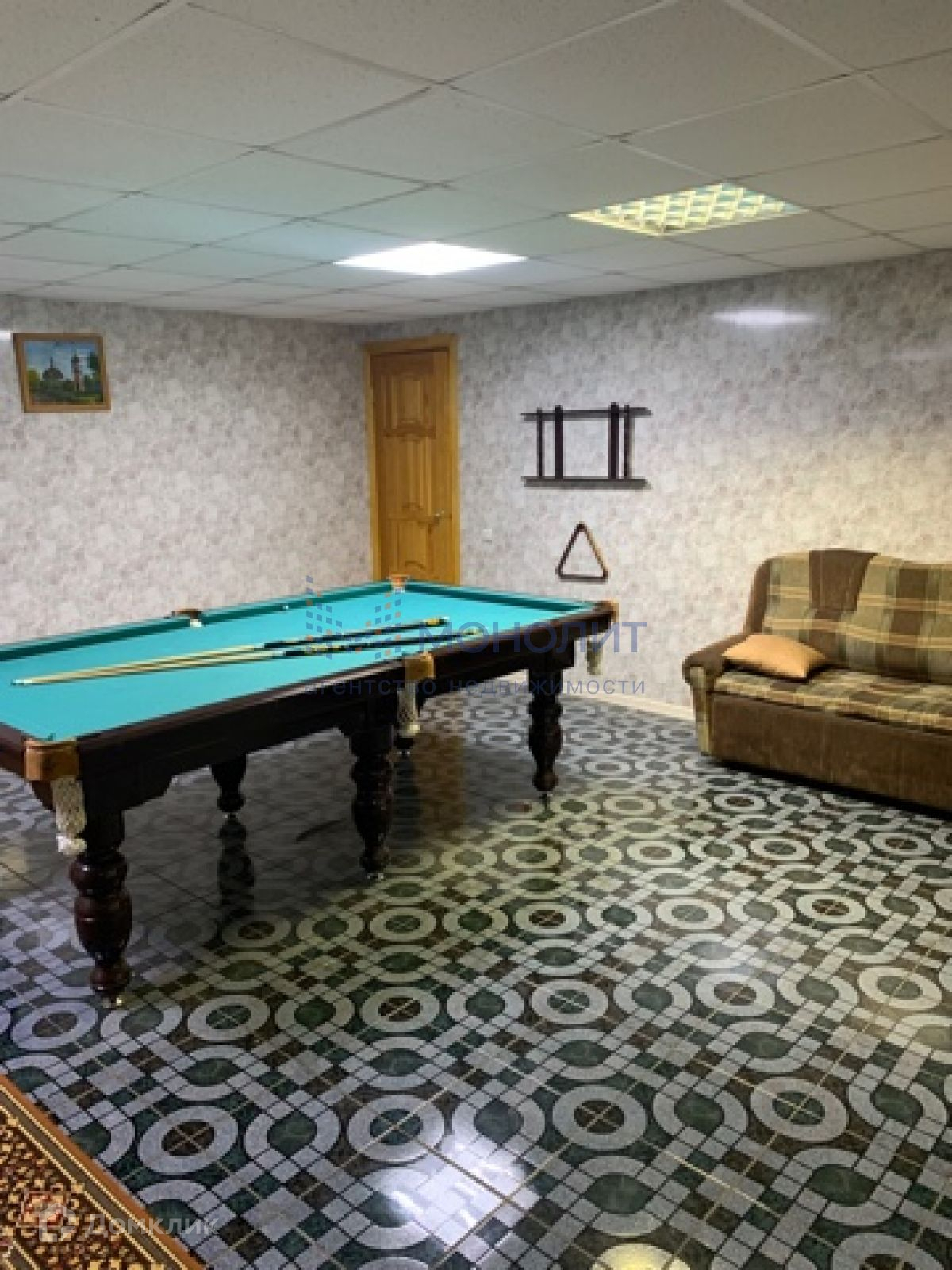 В цокольном этаже расположены:  русский бильярд, сауна, котельная с двумя котлами, кладовая комната.