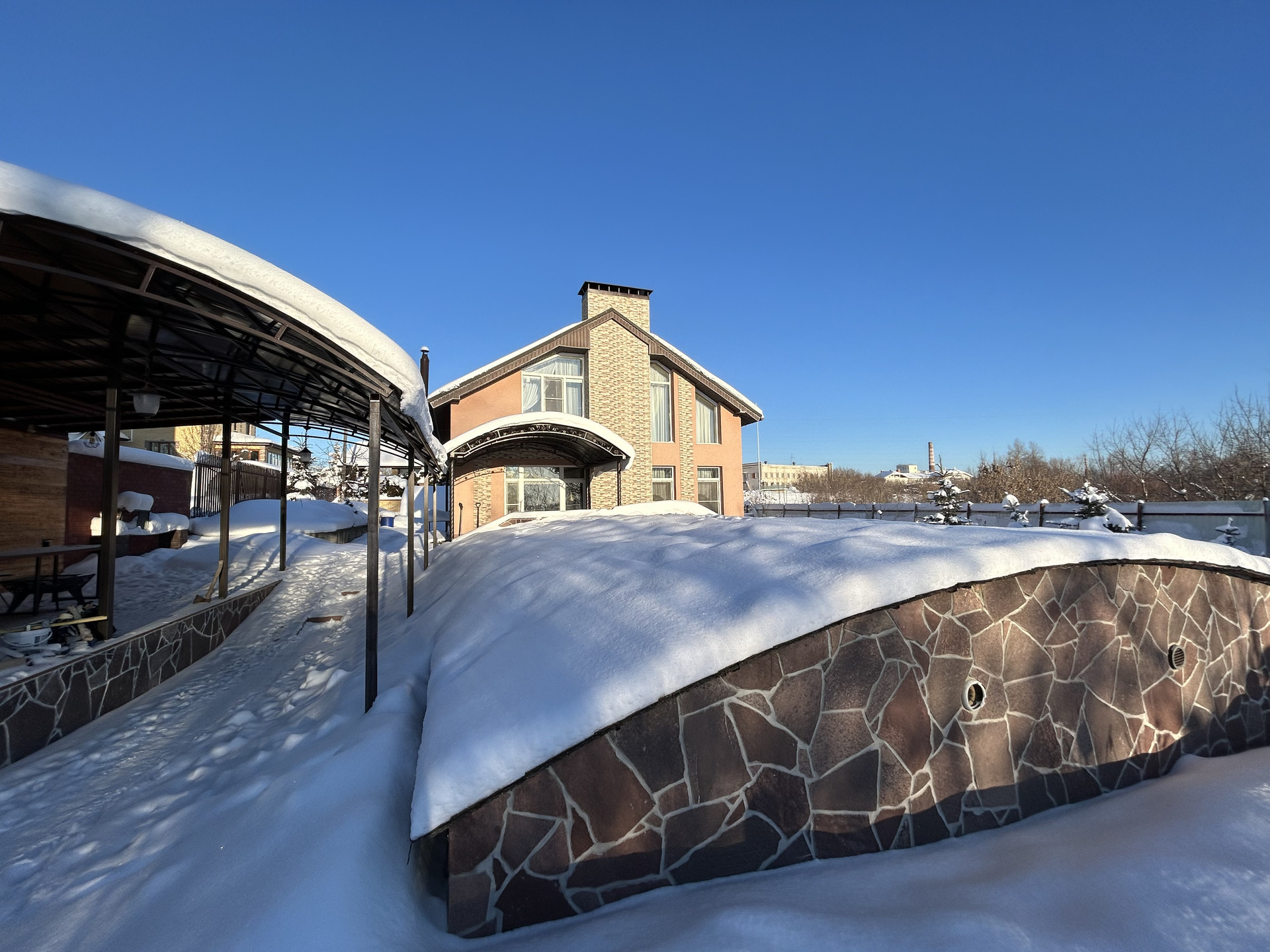 Дом построен из монолитного бетона по технологии несъемной опалубки и он очень теплый! В доме газовая котельная с мощным напольным итальянским котлом, есть электрокотёл и камин на 1 этаже.