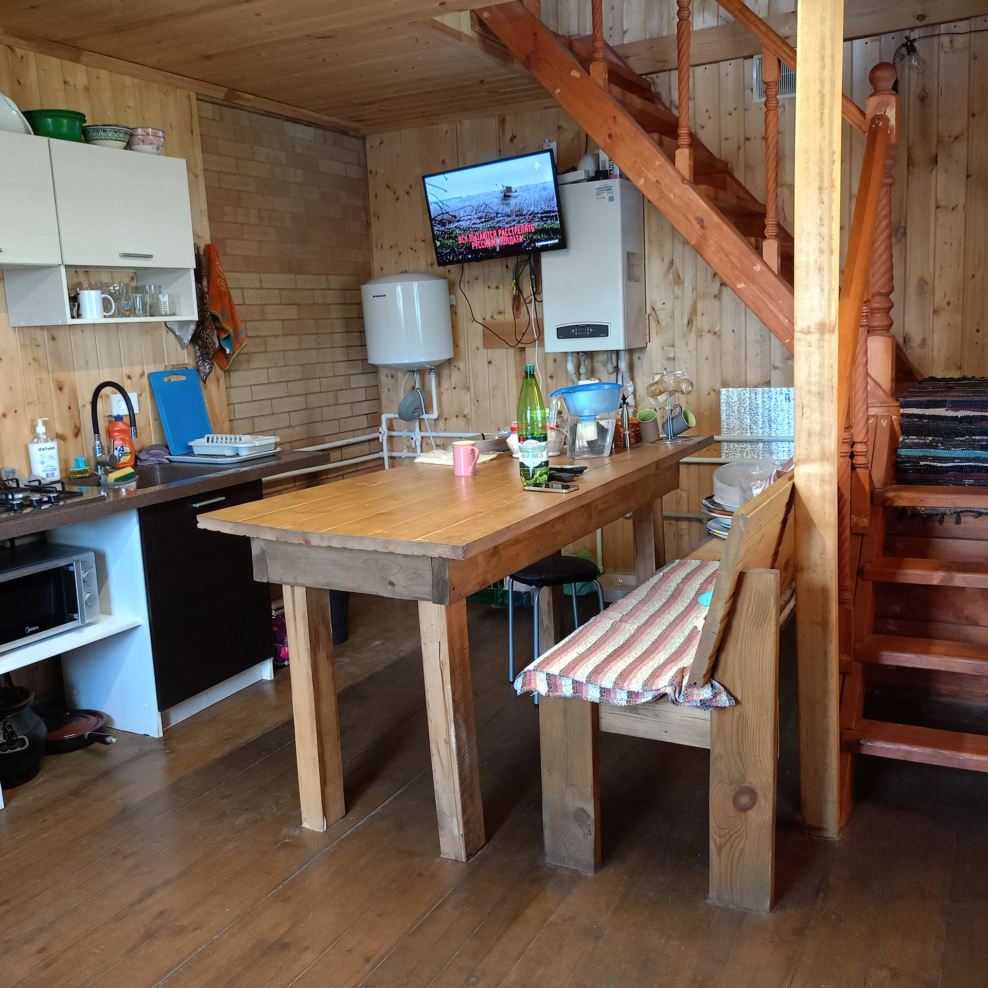 ✅На первом этаже гостиная с кухней, душевая с туалетом и банное помещение.