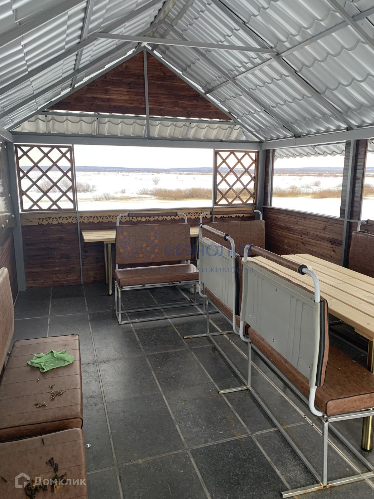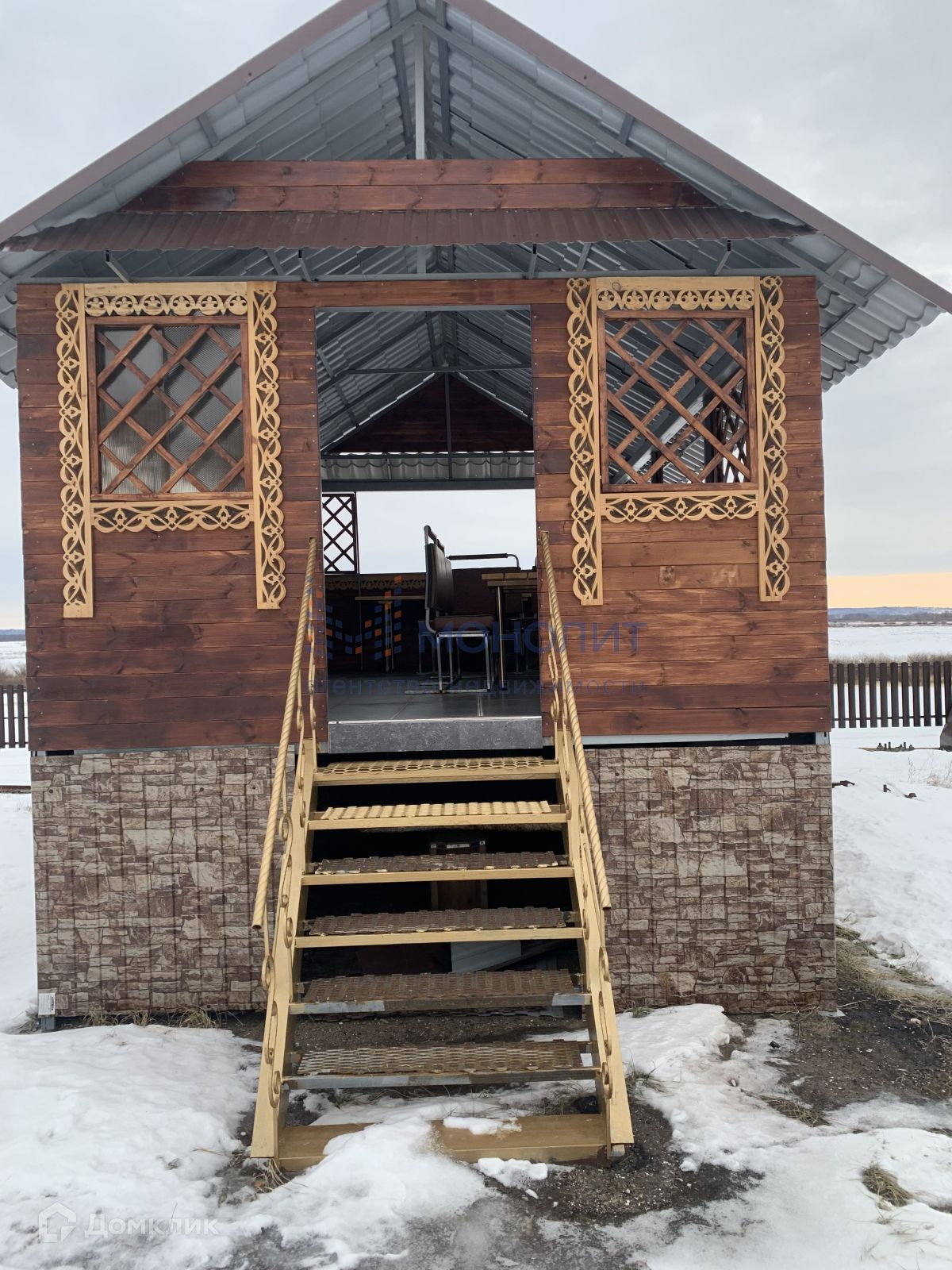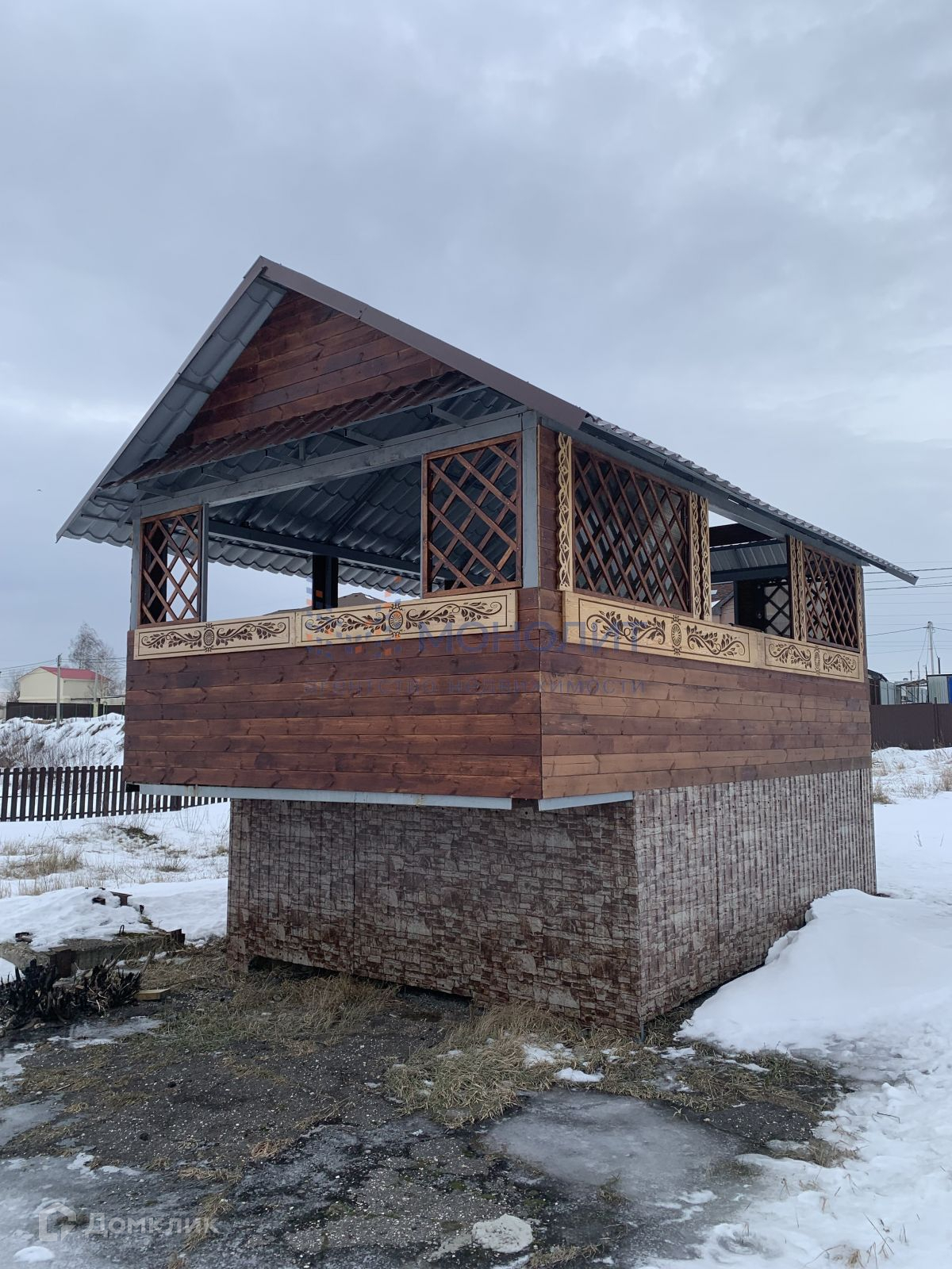 На участке установлена красивая многофункциональная беседка, где  верхняя палуба для отдыха, а нижняя для хранения различного инвентаря.