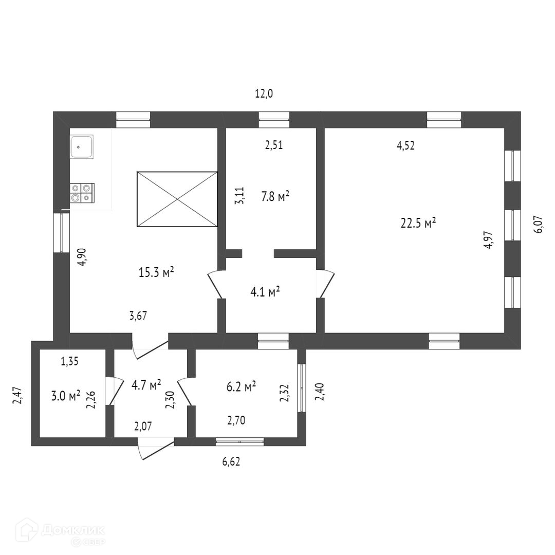 Общая площадь 63.9 м2