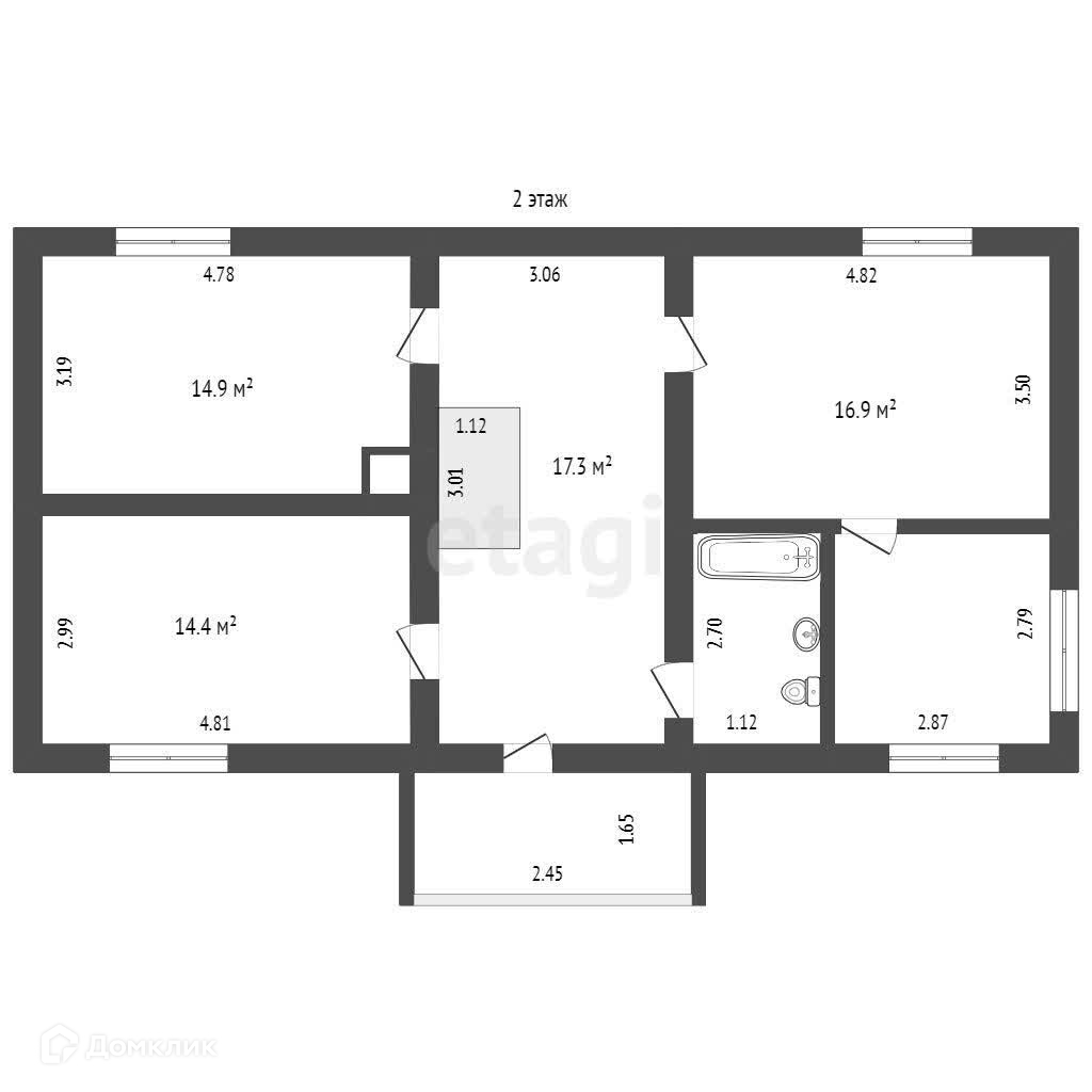 На втором этаже имеется три изолированных жилых комнаты: 14,9кв.м., 14.4 кв.м. и 16,9 кв.м., балкон и веранда, а также оборудован второй санузел. С веранды можно попасть в просторное чердачное помещение.