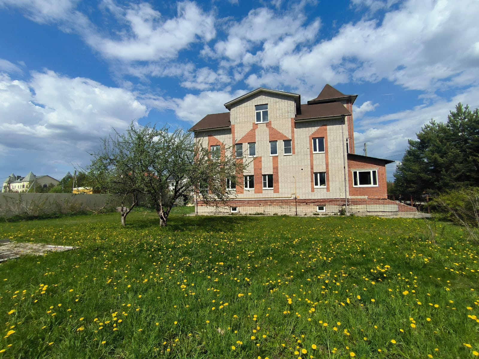 - Отделка практически полностью выполнена на 3 и 2 этажах: стены прошпаклеваны под финиш, 1 и цокольный этажи: стены прошпаклеваны. Снаружи осталось лишь покрасить фасад и украсить его лепниной.
