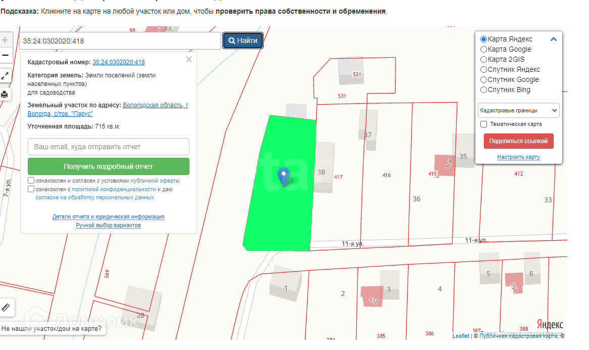 Площадь участка 7.15 сот.