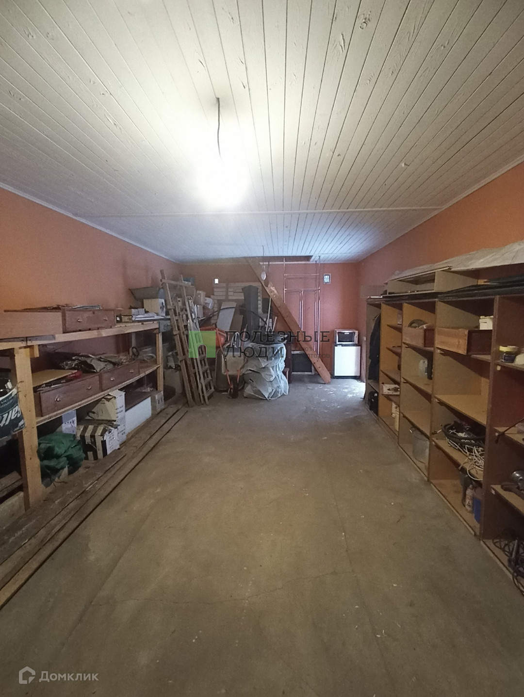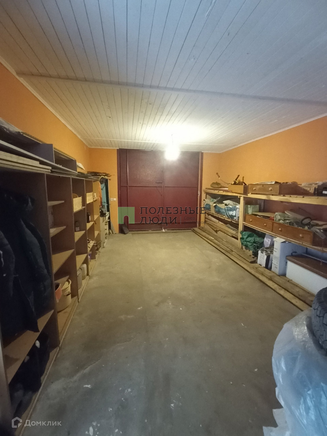 Рядом большой 2-этажный кирпичный гараж на фундаменте из блоков. Размер гаража 4.5* 9 метров. Ворота 3 метра высотой позволяют заехать грузовой газели. На втором этаже гаража большая комната.