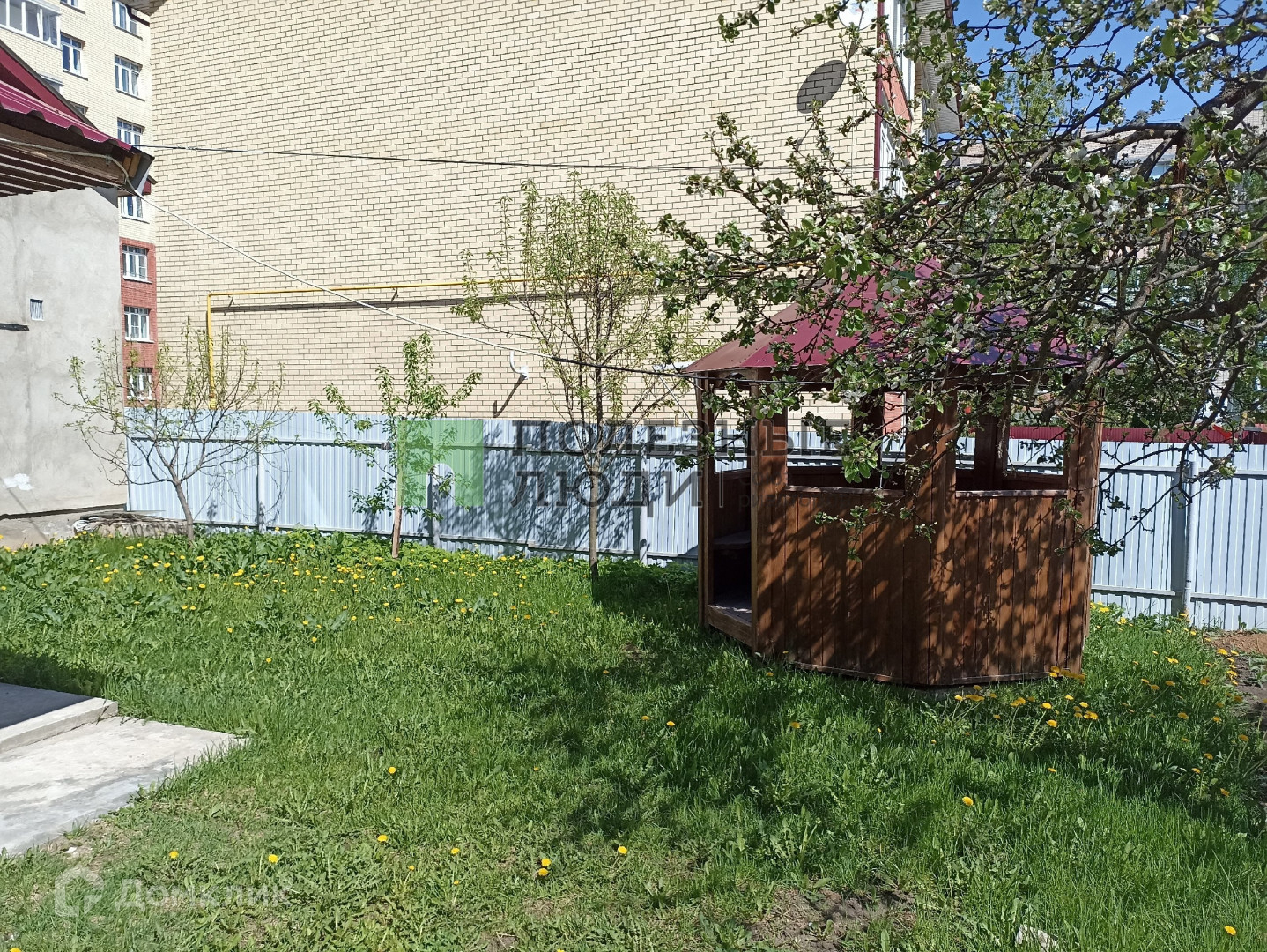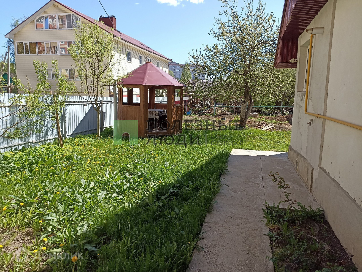 На участке колодец, беседка, очень вкусные груши.